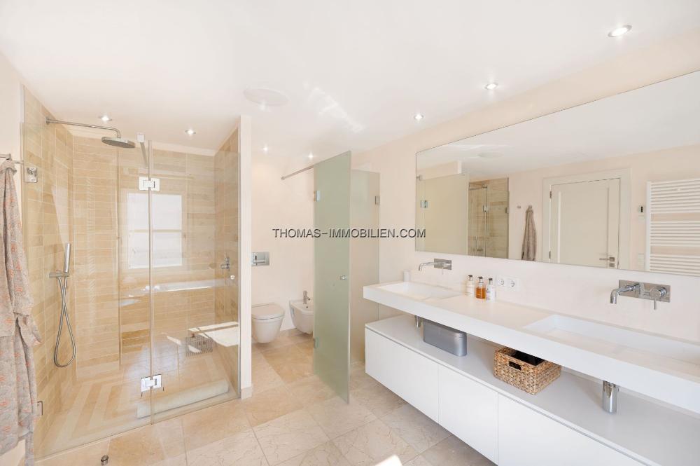 Jenseits der Wände bietet die Residenz Zugang zu zwei schimmernden Gemeinschaftspools, die mit Eleganz gestaltet und für Freizeit konzipiert sind. Innen trifft Komfort auf Technologie: Ein BANG & OLUFSEN Soundsystem erfüllt das Haus mit Musik, Smart Home KNX steuert Beleuchtung, Klima und Heizung, während Fußbodenheizung und eine effiziente Wärmepumpe ganzjährigen Komfort gewährleisten. Auch die Praktikabilität wird mit Tiefgaragenstellplatz, privatem Abstellraum, einem direkten Aufzug zum Penthouse und einem voll ausgestatteten Waschraum mit Siemens-Geräten bestens berücksichtigt.
