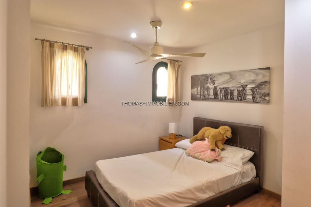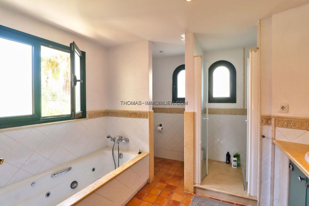 Das Design der Villa bietet eine funktionale und komfortable Wohnumgebung. Sie verfügt über ein offenes Wohn- und Esszimmer mit integrierter Küche, das einen hellen und geselligen Raum schafft. Das Haus umfasst vier Schlafzimmer (in den Unterlagen als 3 angegeben), von denen 3 über eigene en-suite Badezimmer verfügen, zusätzlich zu einer separaten Gästetoilette. Zwei der Schlafzimmer befinden sich im Erdgeschoss, eines davon mit direktem Zugang zum Garten und Pool. Die Immobilie ist mit Klimaanlage für ganzjährigen Komfort ausgestattet und verfügt über einen Kamin, der in den kühleren Monaten eine gemütliche Atmosphäre schafft.