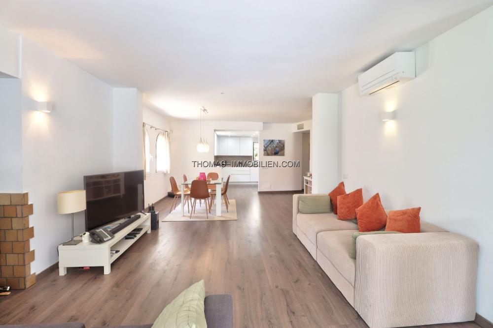 Diese außergewöhnliche Villa befindet sich in der exklusiven Wohnanlage Ses Penyes Rotges Golf in Nova Santa Ponsa. Mit einer Gesamtfläche von 195 m² verbindet diese Immobilie modernen Komfort mit einer begehrten Lage direkt am Golfplatz und bietet ein ideales Zuhause für diejenigen, die Privatsphäre und einen aktiven Lebensstil schätzen.