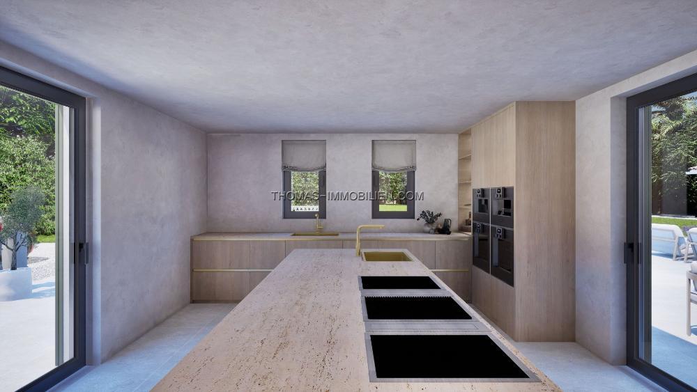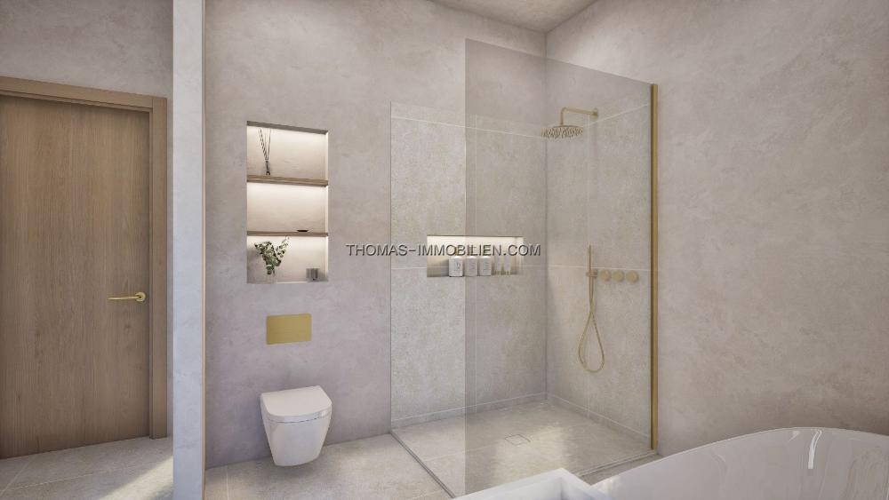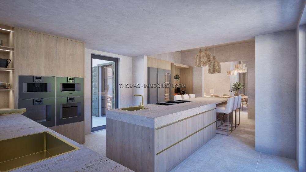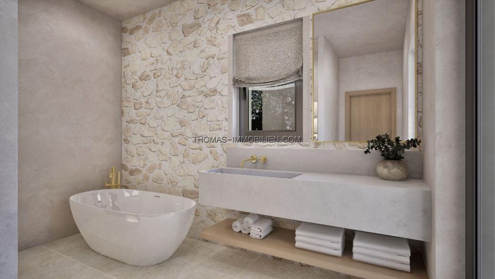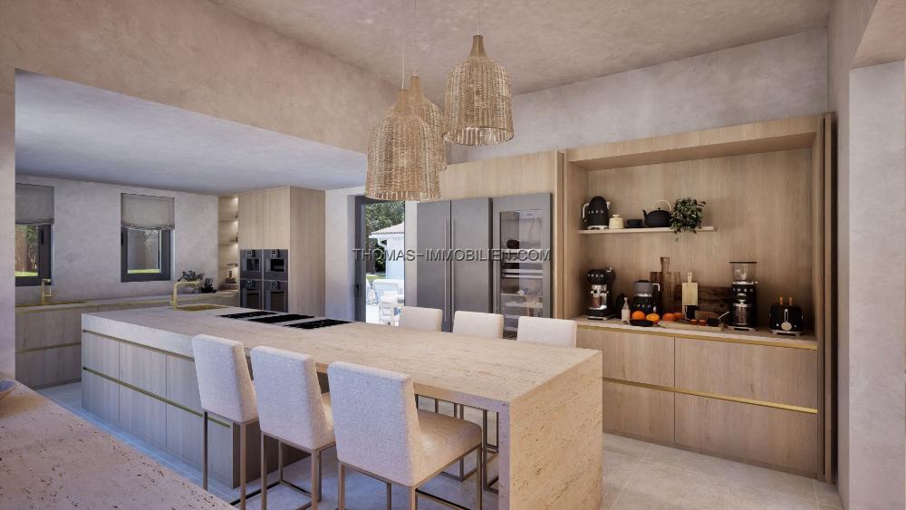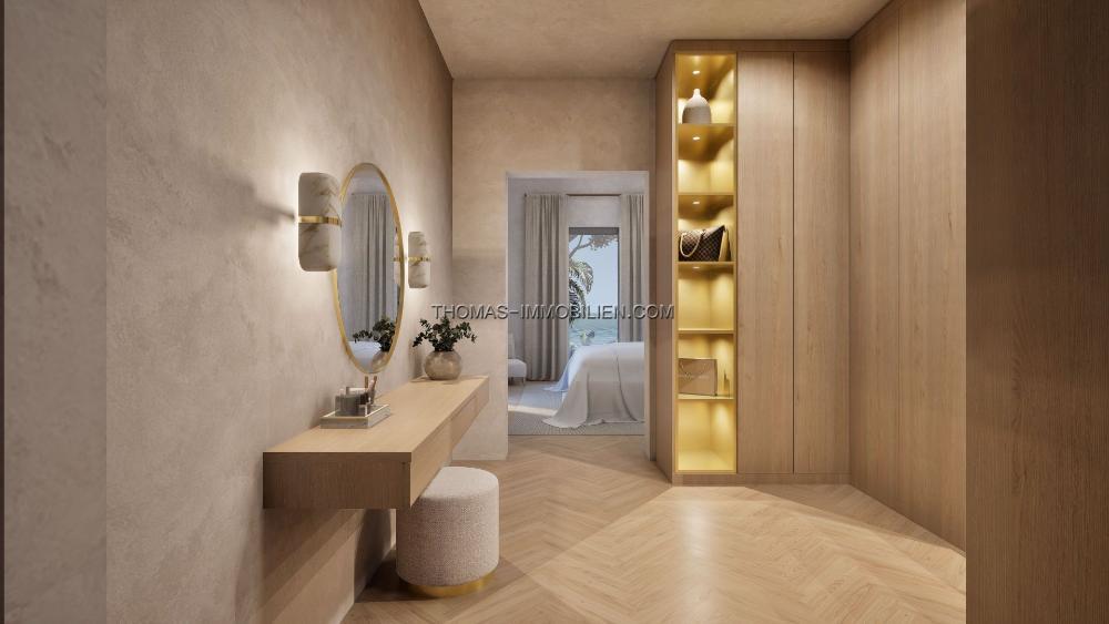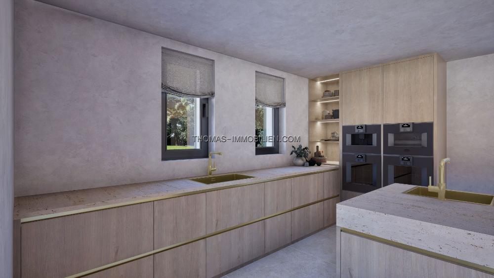 Die Immobilie wird nach den höchsten Standards fertiggestellt und umfasst Klimaanlage (warm/kalt), Fußbodenheizung, elektrische Tore, ein Sicherheitssystem, KNX-Smart-Home-Technologie, WC3-Sanitärkeramik, gebürstete Goldarmaturen, eine Designerküche, verstärkte Wärmedämmung und Porzellanböden. Das Haus wird wie in den CGI-Visualisierungen gezeigt geliefert, und weitere Details sind auf Anfrage erhältlich.