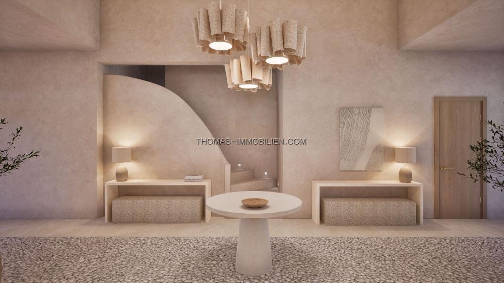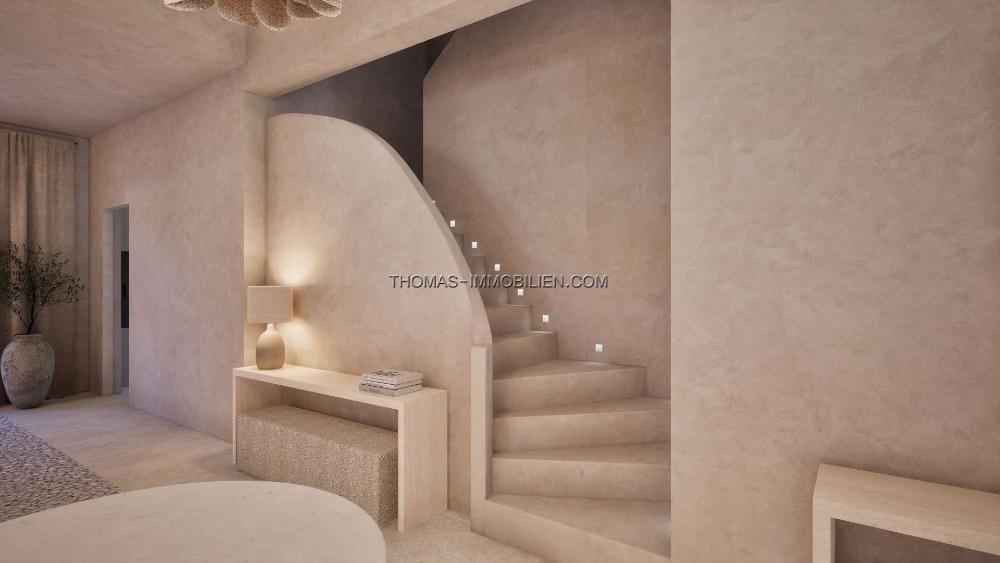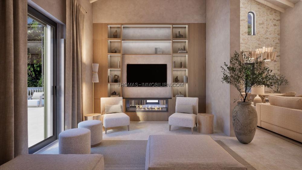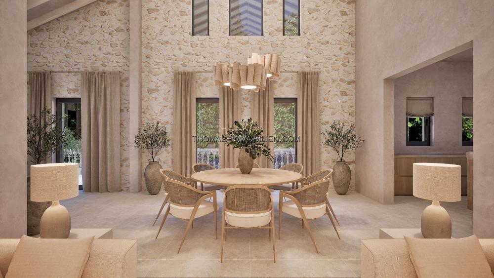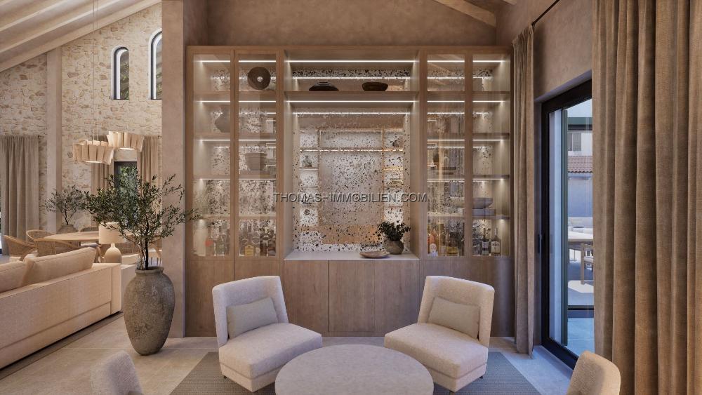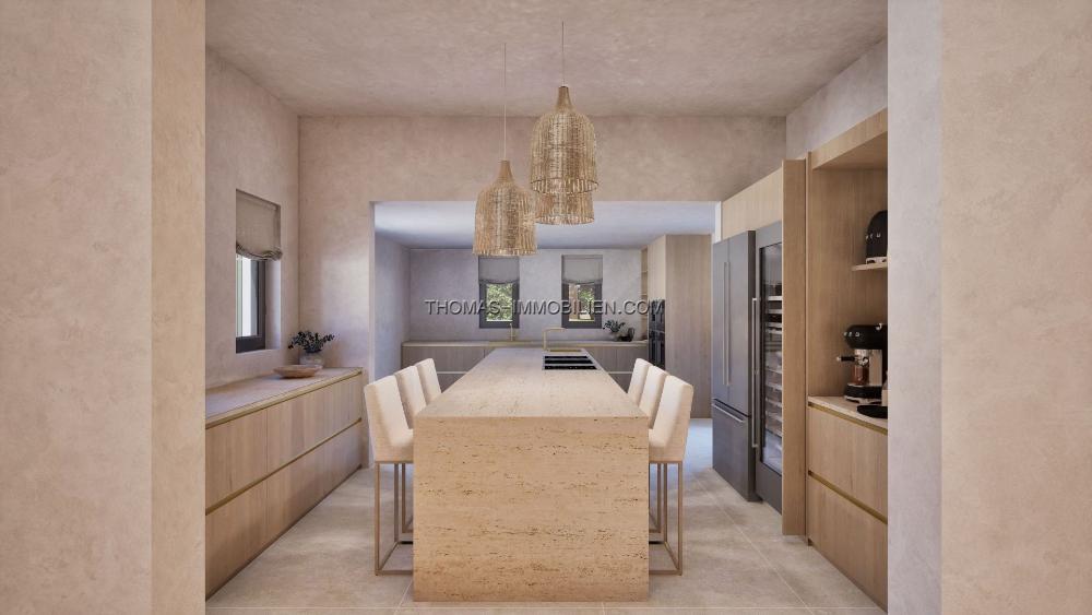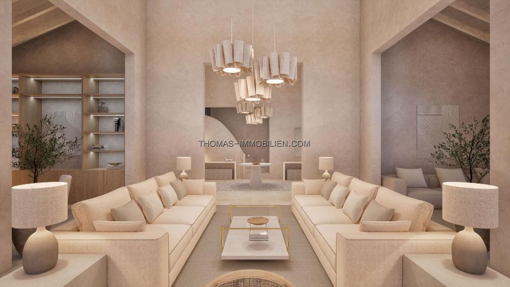 Mit Eleganz und dezenter Luxus im Sinn entworfen, spiegelt die Villa den mediterranen Lebensstil in seiner besten Form wider. Eine neutrale Farbpalette kombiniert mit natürlichen Materialien, inspiriert von der lokalen Landschaft, während raffinierte Texturen und maßgeschneiderte Details eine warme und einladende Atmosphäre schaffen. Die Architektur erreicht einen nahtlosen Übergang zwischen Innen- und Außenbereichen, was das Haus ideal für sowohl ruhige Entspannung als auch stilvolles Unterhalten macht.