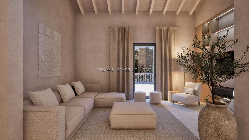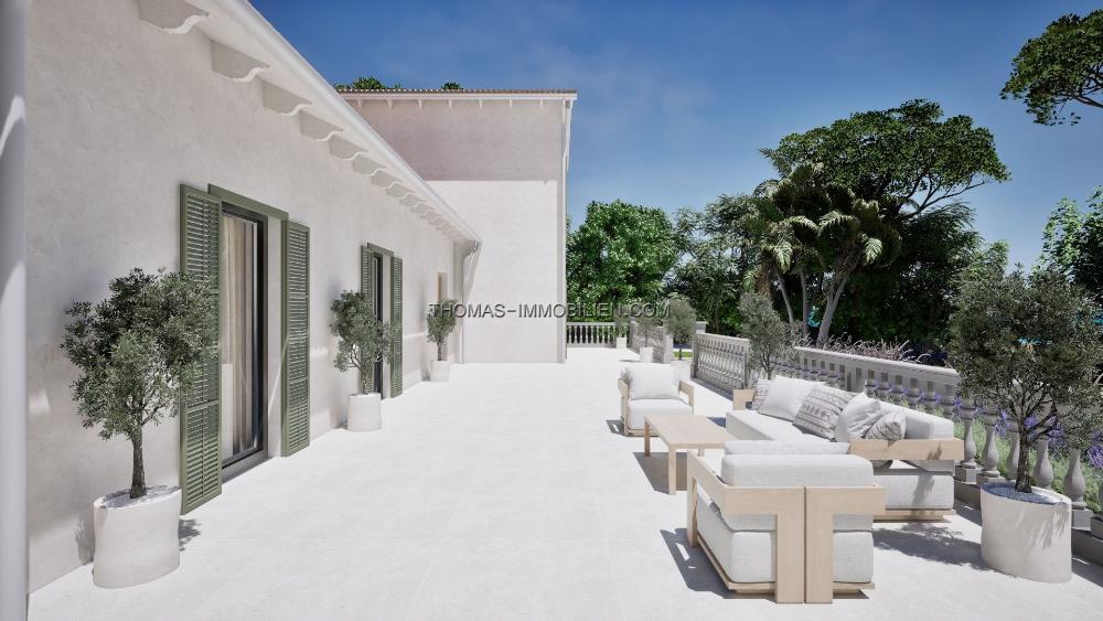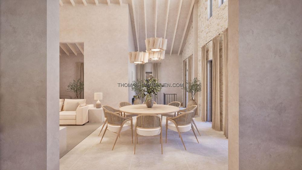 Ein markanter Turm verstärkt den Charakter der Immobilie und bietet unabhängige Unterkünfte, ideal für Gäste oder Personal, sowie eine charmante Terrasse mit Blick auf die Gärten, Berge und die Bucht von Pollensa. Die Lage ist ebenso privilegiert, mit zwei der schönsten Strände der Gegend, Platja de Sant Pere und Platja de Sa Font de Sant Joan, nur einen kurzen Spaziergang entfernt.