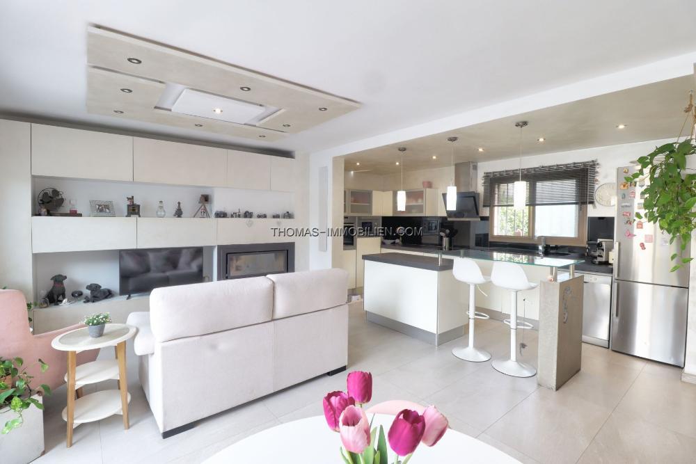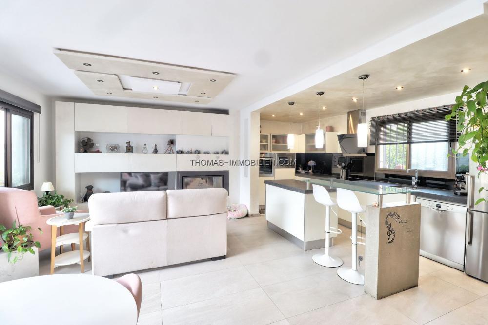 Komfort ist das ganze Jahr über garantiert, dank der effizienten Klimaanlage, die im gesamten Haus installiert ist, ergänzt durch die gemütliche Atmosphäre eines Kamins für kühlere Abende. Zusätzliche praktische Merkmale umfassen einen dedizierten Stauraum, um die Wohnbereiche frei von Unordnung zu halten.