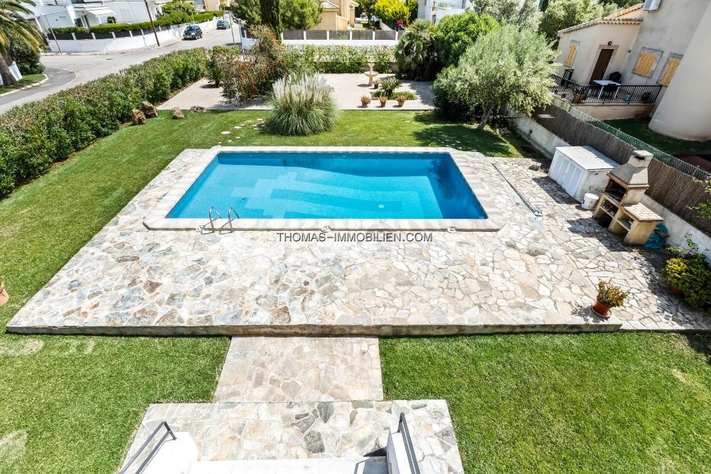 Auf zwei Ebenen angeordnet, verfügt die Immobilie über eine großzügige bebaute Fläche und ist durchgehend mit natürlichem Licht durchflutet. Helle und geräumige Innenräume umfassen einen einladenden offenen Wohn- und Essbereich mit direktem Zugang zu sonnigen Terrassen, eine gut ausgestattete Küche, drei Doppelschlafzimmer und drei Badezimmer. Der Grundriss ist sowohl praktisch als auch vielseitig, ideal für das ganze Jahr über oder für Ferien, und präsentiert sich in sehr gutem Zustand, bietet jedoch auch Möglichkeiten für sanfte Modernisierungen, um den individuellen Geschmack zu treffen.