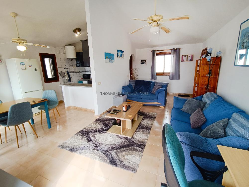Die Wohnung ist geräumig und gut geschnitten, wobei sich die beiden Schlafzimmer und das Bad auf der Rückseite des Hauses befinden und der Wohnbereich auf der Vorderseite. Beide Schlafzimmer sind mit Einbauschränken ausgestattet und führen auf die Terrasse, von der aus man das Wunder des Teide sehen kann und die die meiste Zeit des Tages im Schatten liegt. Das Haus ist sehr hell und luftig, und der klimatisierte Wohn-/Essbereich führt auf die nach Süden ausgerichtete Terrasse, die im völligen Gegensatz zur hinteren Terrasse steht und von morgens bis zum Sonnenuntergang von der Sonne beschienen wird. Die voll ausgestattete, moderne Küche ist vom Wohnbereich abgetrennt, befindet sich aber in unmittelbarer Nähe des Esstisches. Die Immobilie ist stilvoll eingerichtet und wird möbliert verkauft.