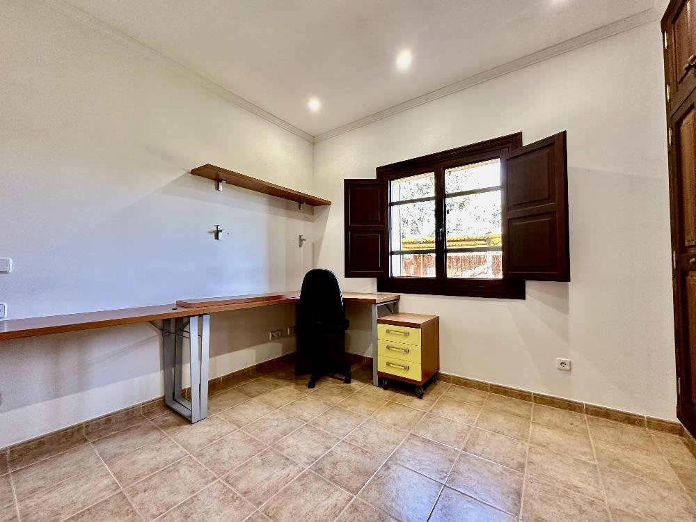 Dieses schöne und sonnige Anwesen befindet sich in der ruhigen Gegend von Ses Olleries, in der Gemeinde Santa Eugenia, nur etwa 20 Autominuten von Palma entfernt. Das Chalet hat eine bebaute Fläche von ca. 300 qm. Das Haus befindet sich auf einer Etage und besteht aus einem geräumigen Wohnzimmer mit Kamin, einem Esszimmer, einer voll ausgestatteten Küche mit einem separaten Abstellraum, 4 Schlafzimmern und 2 Bädern mit Badewanne. Es gibt auch ein drittes Badezimmer in der Nähe des Pools. Das Anwesen ist von schönen Grünflächen umgeben und es hat auch einen Pool, eine Außenküche, Klimaanlage, Internet und eine sehr ruhige und entspannende Umgebung.