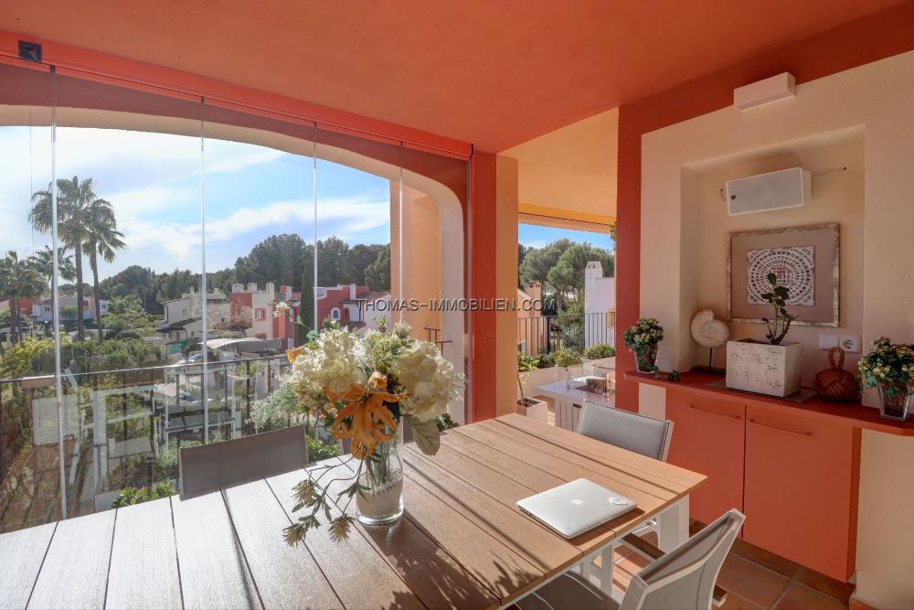 Darüber hinaus ist die Immobilie fußläufig zu Port Adriano gelegen. Diese weltbekannte Marina, entworfen von Philippe Starck, dient als Zentrum für luxuriöses Leben und bietet eine Vielzahl von Gourmet-Restaurants, exklusiven Boutiquen und einen Sandstrand, alles ohne Auto erreichbar.