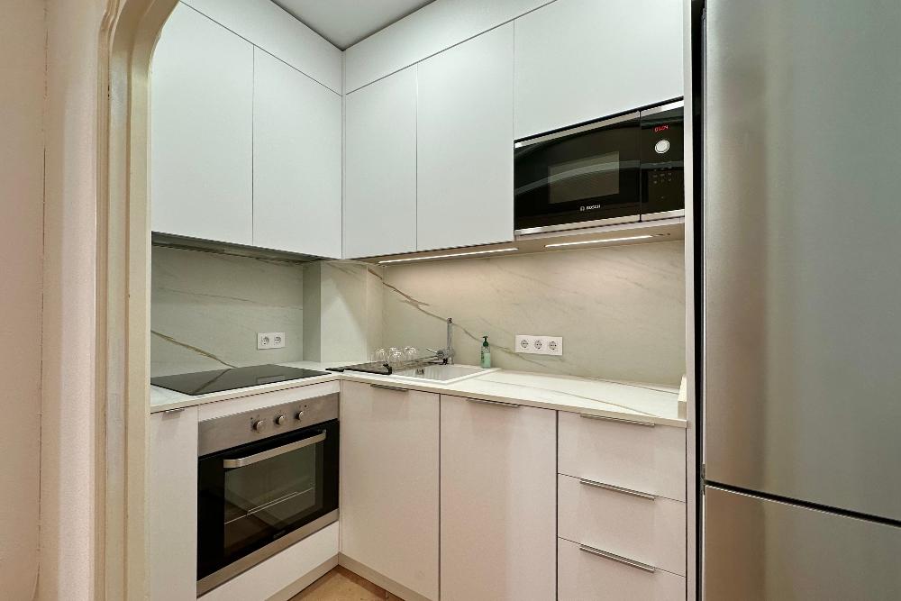 Im Herzen der charmanten Altstadt von Palma befindet sich dieses stilvolle Apartment im zweiten Stock eines gepflegten Gebäudes. Die Wohnung überzeugt durch ihre gehobene Ausstattung sowie ein durchdachtes Raumkonzept auf 83 qm. Sie verfügt über ein großzügiges Wohnzimmer mit integrierter, moderner Küche, ein komfortables Schlafzimmer sowie ein elegantes Badezimmer. Sowohl die Küche als auch das Bad wurden kürzlich hochwertig renoviert und präsentieren sich in zeitgemäßem Design. Das Apartment wird möbliert angeboten und ist mit allen Annehmlichkeiten ausgestattet, darunter Klimaanlage, Waschmaschine und Trockner.