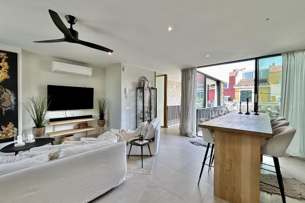 In der begehrten Gegend von El Molinar gelegen, bietet dieses helle zweistöckige Haus eine perfekte Kombination aus Komfort, Großzügigkeit und modernem Stil . Das Erdgeschoss verfügt über ein geräumiges Hauptschlafzimmer mit eigenem Bad en suite sowie zwei weitere Schlafzimmer, die sich ideal für Familie, Gäste oder ein Homeoffice eignen. Ein zweites Badezimmer steht den übrigen Räumen zur Verfügung. Auf dieser Ebene befindet sich außerdem ein praktischer Hauswirtschaftsraum sowie ein wunderschön lichtdurchfluteter Innenhof, der das Haus mit natürlichem Licht erfüllt und eine ruhige, luftige Atmosphäre schafft. Im Obergeschoss befindet sich ein großzügiger offener Wohn- und Küchenbereich. Zusätzlich gibt es hier ein Gäste-WC. Von hier aus gelangen Sie auf die private Dachterrasse.