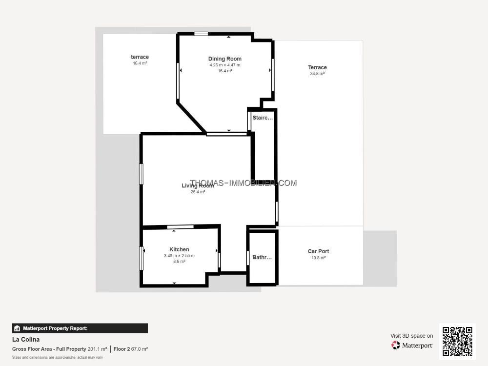 Das Haus erstreckt sich über drei Ebenen und bietet insgesamt 369,50 m² (laut offiziellen Unterlagen) Raum, der sowohl offen als auch privat wirkt:
