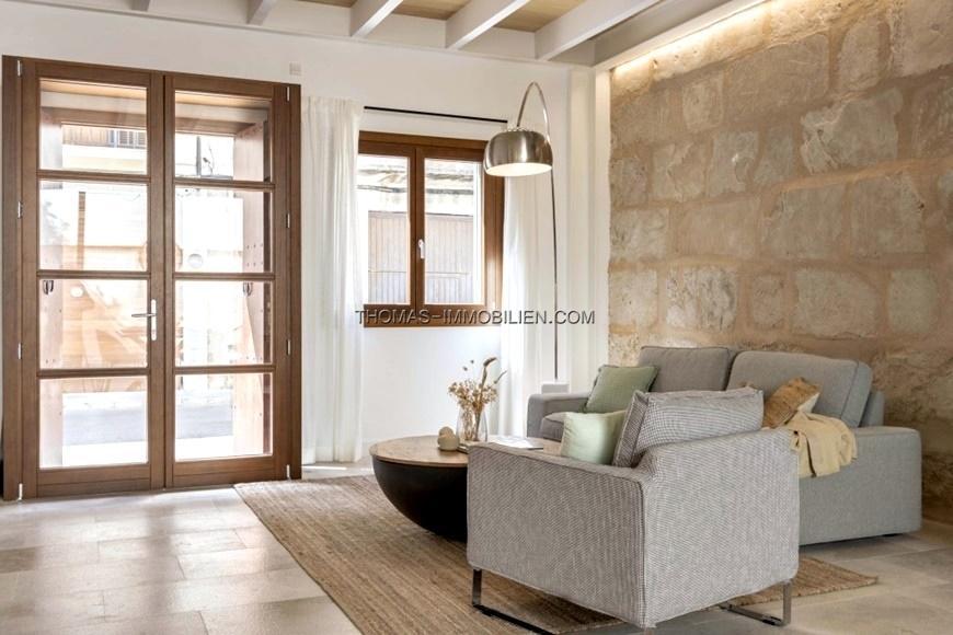 Neu gebautes Haus zum Verkauf in Pollensa. Spektakuläres Stadthaus zum Verkauf in Pollensa, Mallorca. Diese neu gebaute Immobilie verfügt über vier Doppelschlafzimmer, zwei davon mit eigenem Bad en suite. Darüber hinaus gibt es ein Gäste-WC im Erdgeschoss. Im Erdgeschoss befindet sich die moderne Küche, komplett ausgestattet mit den neuesten Geräten. Von hier aus haben Sie durch die großen Fenster Zugang zum Garten mit Pool. Das Wohn-Esszimmer mit seinem offenen Konzept geht fließend in die Küche über und schafft eine großzügige und vielseitige Atmosphäre. Im Wohn-Esszimmer befindet sich ein effizienter und ökologischer Pelletkamin. Dieses System sorgt für eine warme und gemütliche Atmosphäre. Außerdem gibt es eine leicht zugängliche Garage. Und die Terrasse mit Swimmingpool, wo Sie die heißen Sommertage genießen können. Ein Highlight des Hauses ist die schöne Treppenhauswand aus dem für Mallorca typischen Marés-Stein. Im ersten Stock befinden sich drei Doppelschlafzimmer, zwei davon mit Badezimmern en suite. Die zentrale Klimaanlage garantiert eine angenehme Temperatur im ganzen Haus. Im ersten Stock befindet sich das Hauptschlafzimmer. Dieses Zimmer ist hell und geräumig, mit einem eigenen Bad, das mit den besten Einrichtungen und Oberflächen ausgestattet ist, seine großen Fenster ermöglichen den Eintritt von natürlichem Licht und Zugang zur privaten Terrasse mit Blick auf das Dorf und die Berge. pre