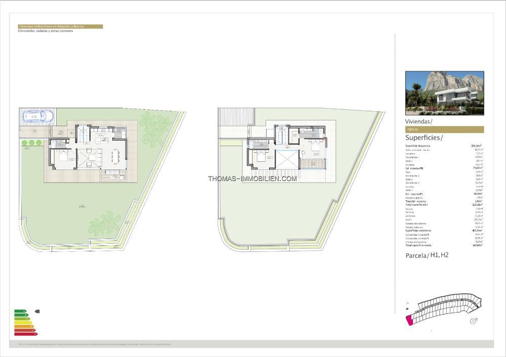 Dies ist die erste Phase einer Wohnanlage mit 65 freistehenden Villen, die in Polop am Fuße des Monte Ponoig entstehen soll. Eine Urbanisation, die sich durch Sicherheit, Natur und Komfort auszeichnet. Polop ist ein kleines Dorf mit einem historischen Zentrum in einer wunderschönen Naturlandschaft. Es liegt etwas im Landesinneren, aber der Strand von Albir ist in weniger als 20 Autominuten zu erreichen und auch das lebhafte Benidorm ist nur 15 Autominuten entfernt. Polop selbst verfügt über zahlreiche Einrichtungen, ebenso wie das etwas größere La Nucia, das nur 5 Autominuten entfernt ist. Insgesamt gibt es 8 verschiedene Modelle mit 3 oder 4 Schlafzimmern.