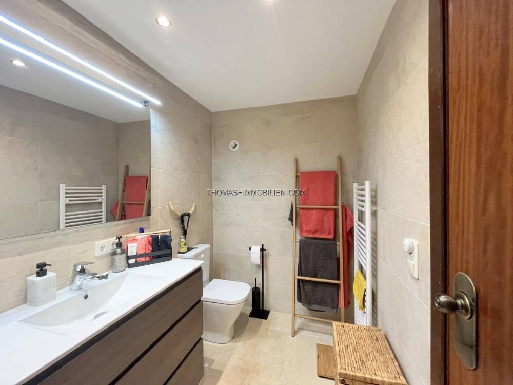 Wunderschöne Wohnung mit ca. 74 m², gelegen in einer renommierten Wohnanlage in Sa Coma, nur zehn Gehminuten von den Stränden von Sa Coma und Cala Millor entfernt. Sie verfügt über ein großzügiges Doppelschlafzimmer, ein vollständig renoviertes Badezimmer mit Dusche, ein helles Wohn-Esszimmer mit integrierter amerikanischer Küche, einen separaten Hauswirtschaftsraum sowie eine private Terrasse von ca. 15 m² – ideal, um das mediterrane Klima zu genießen. Die Wohnung ist mit Zentralheizung und reversibler Klimaanlage (warm/kalt) im Wohnzimmer ausgestattet. Im Preis inbegriffen sind ein Tiefgaragenstellplatz und ein Abstellraum von ca. 8 m². Die Wohnanlage bietet gepflegte Gärten mit einheimischer Bepflanzung sowie einen großen Gemeinschaftspool. Die Wohnung wird möbliert und vollständig ausgestattet verkauft – sofort bezugsfertig.