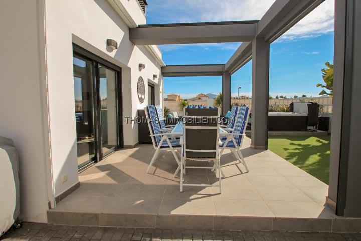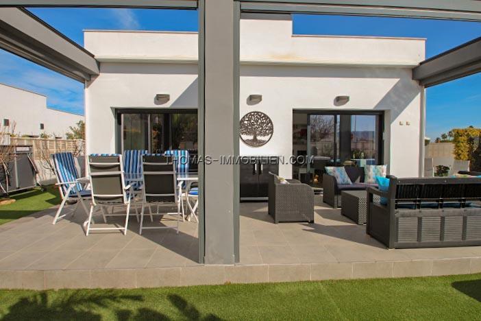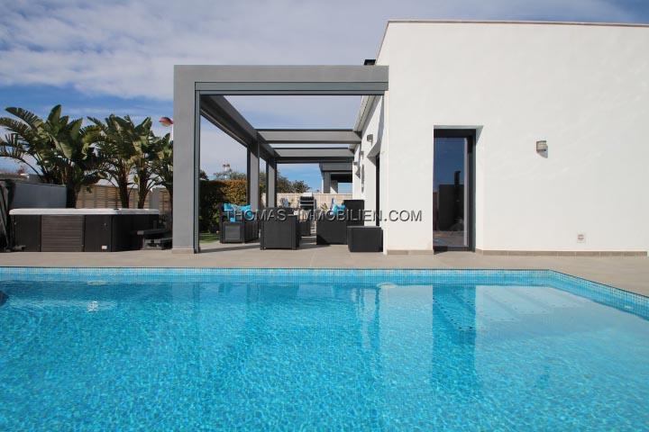 Das Haus ist mit umschaltbarer Klimaanlage warm/ kalt (Splits) in jedem Zimmer, Kamin im Wohnzimmer, Aluminiumfenstern mit Doppelverglasung, elektrischen Rollläden und Moskitonetzen, Terrasse von 28 m² mit elektrischer Pergola ausgestattet.