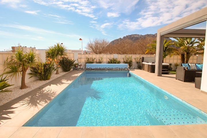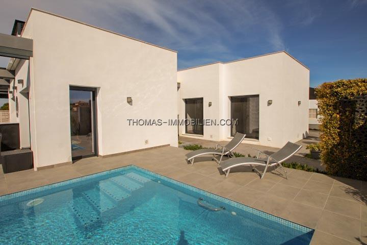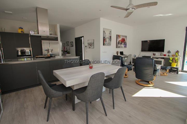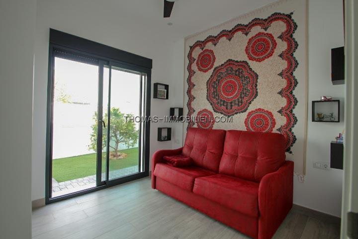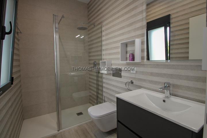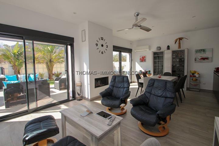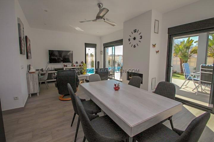 Erbaut im Jahr 2018 auf einem Grundstück von 500 m², besteht dieses Haus aus Eingang, Wohnzimmer mit Kamin und direktem Zugang zur Terrasse, ausgestatteter amerikanischer Küche mit Zugang nach draußen, 3 Doppelzimmern mit Einbauschränken, 2 Bädern mit italienischer Dusche, eines davon en Suite mit dem Hauptschlafzimmer und einem Gäste-WC. Es hat auch einen Abstellraum und eine Waschküche mit Platz zum Aufbewahren.
