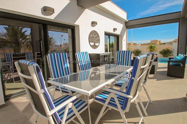 Schöne moderne und sonnige Villa auf einer Etage, am Stadtrand von Els Poblets gelegen, mit allen Arten von Dienstleistungen in der Umgebung.