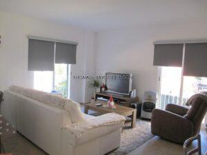 Erster Stock sehr gut gelegen, komplett neu, große geräumige Räume verteilt auf: breiter Eingang, Küche + Wohnzimmer + Esszimmer, 2 große Schlafzimmer mit Einbauschränken, 2 Badezimmer, eines davon en suite, Hauswirtschaftsraum, Klimaanlage warm und kalt , Parkplatz und Abstellraum.