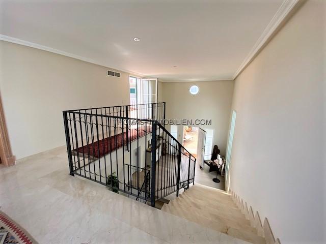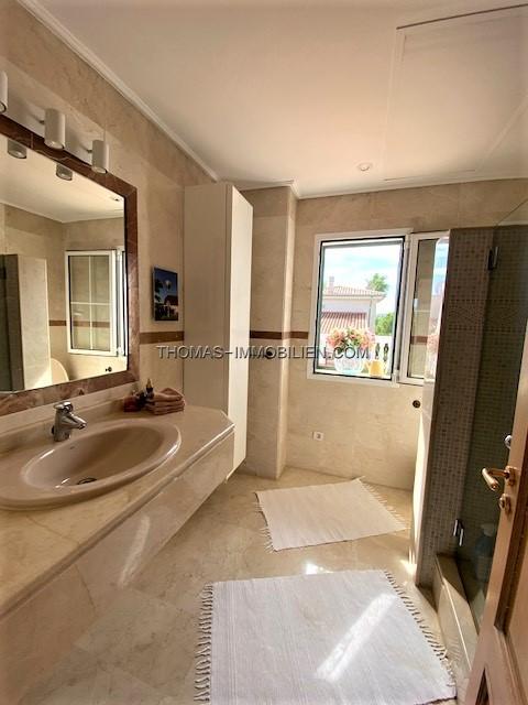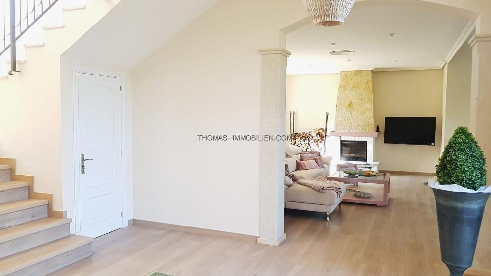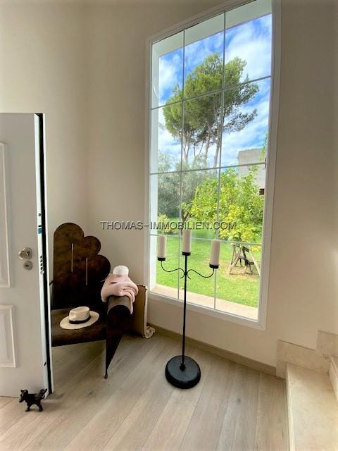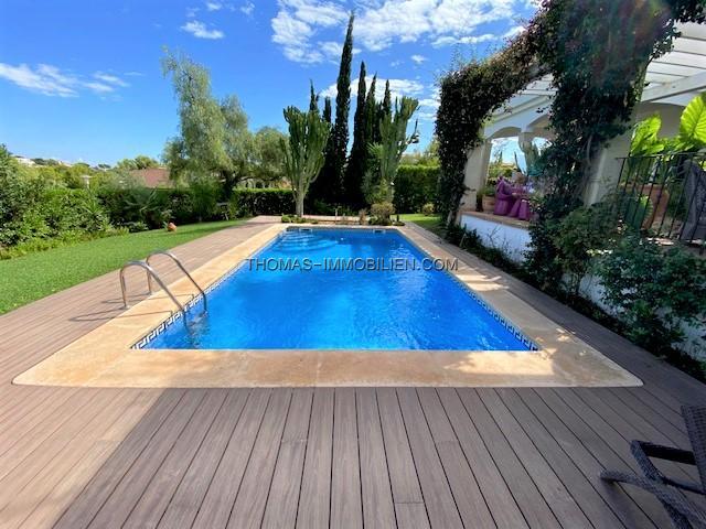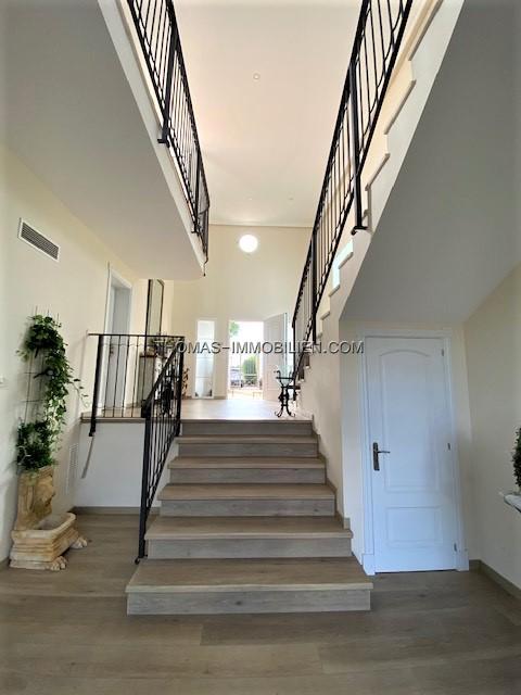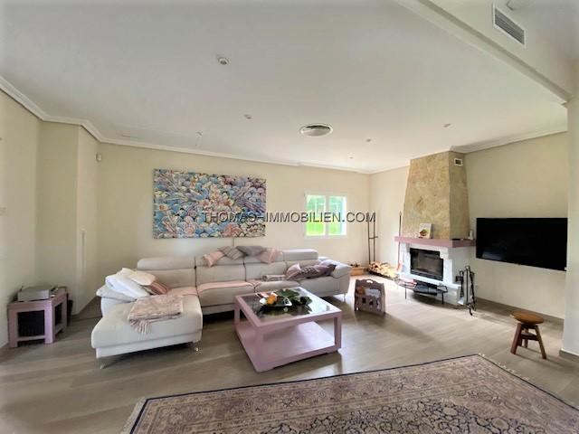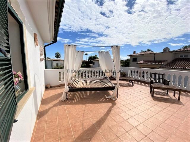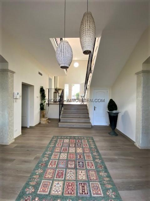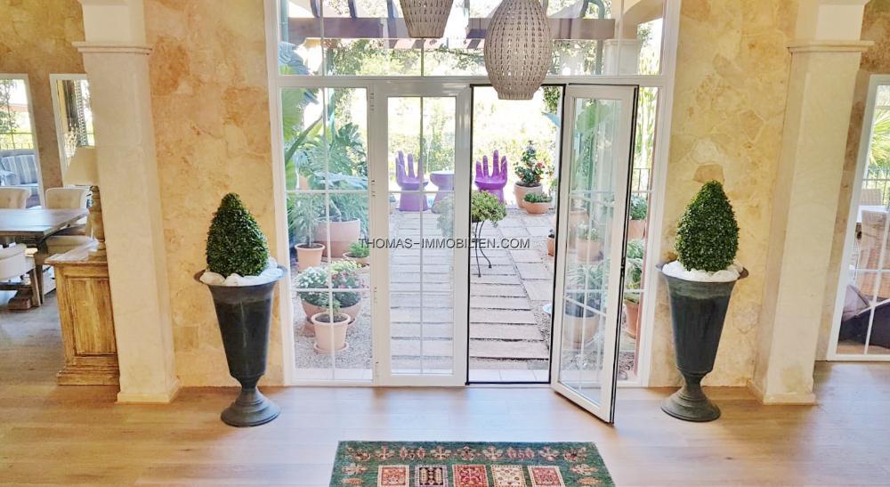 Diese wunderschöne Villa befindet sich einer sehr gepflegten, ruhigen und gesicherten Einzelvillen-Wohnanlage in Cala Vinyes. Sie wurde mit viel Liebe zum Detail und Geschmack eingerichtet. Der Boden ist mit hochertigem Laminat in allen Wohnräumen ausgelegt. Für Wärme sorgt ein grosser Pelletofen. Von der imposanten Eingangstür gelangt man in einen grossen hellen Vorraum mit Blick auf den wunderschönen Garten und Pool. Für viel Platz sorgt eine Doppelgarage, sowie ein separater Abstellraum und Gäste -WC. Rechts davon befindet sich die offene Küche mit gemütlichen Essbereich und Zutritt zur schönen Terrasse, Garten und Pool. Die Küche ist komplett neu und mit hochwertigen Geräten ausgestattet. Gegenüber ist der wunderschöne , großzügige Wohn-und Essbereich mit Kamin und bodentiefen Fenstern mit Blick ins Grüne. Das Obergeschoss ist aufgeteilt in 3 Schlafzimmer mit Bad ensuite. Von jedem Zimmer gelangt man auf eine Terrasse und Balkon. Im Masterschlafzimmer gibt e sauch einen Jacuzzi.Von 2 Terrassen hat man Meerblick.
