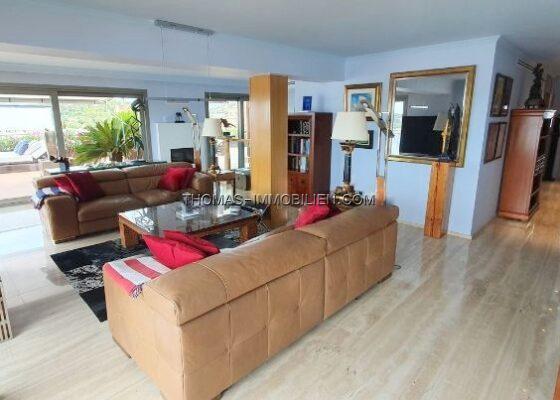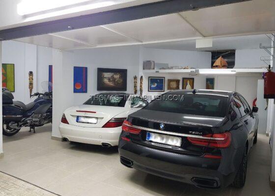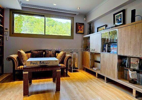 Italienische Travertin-Marmorböden, doppelt verglaste Schüco-Fenster, Cocinart-Küche mit Gaggenau-Geräten, Warm-/Kaltklimaanlage von Daikin, Fußbodenheizung im gesamten Haupthaus (Warm-/Kaltklimaanlage im Gästeapartment und elektrische Heizkörper plus Warm-/Kaltluft im Büro), Waschküche und Abstellraum. Gesamtterrassenfläche: 320 m2, (300 m2 im Haupthausgeschoss und 20 m2 im Untergeschoss) Gebäude mit Portier und Gemeinschaftspool. Das Haus wird mit einem Außenparkplatz auf dem gleichen Grundstück sowie einer unabhängigen Garage für 2 große Autos und ein kleines Auto (65 m2) und viel Stauraum verkauft
