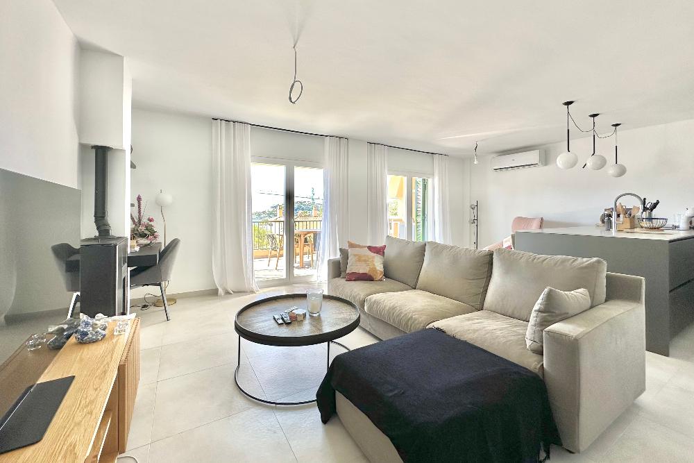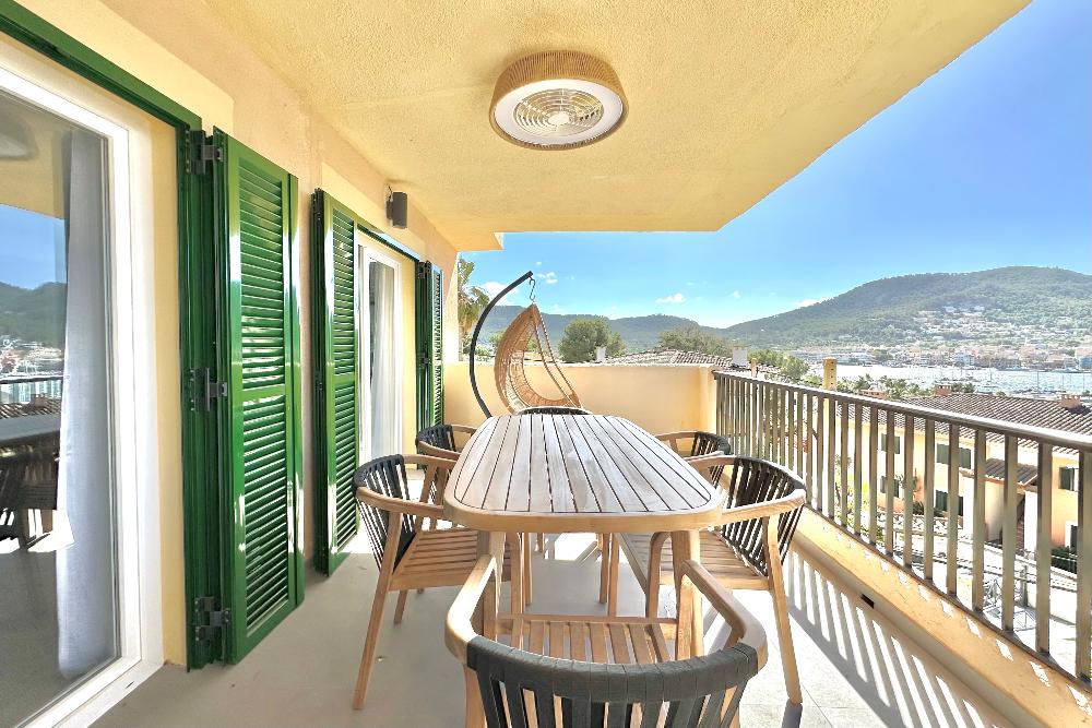 Komplett renovierte Wohnung in kleiner Gemeinschaft mit Pool, privilegierter Lage und Blick auf Puerto Andratx. Diese spektakuläre Wohnung bietet einen herrlichen Blick und befindet sich nur wenige Schritte vom Yachthafen von Andratx entfernt. Es ist komplett neu renoviert mit "alles nagelneu". Es verfügt über einen großen Ess- und Wohnbereich mit integrierter Küche und Frühstücksbar, große Fenster zur Südterrasse, Grill, zwei Schlafzimmer, zwei Bäder. Klimaanlage warm/kalt, Holzofen. Wohnen im Herzen von Puerto Andratx.