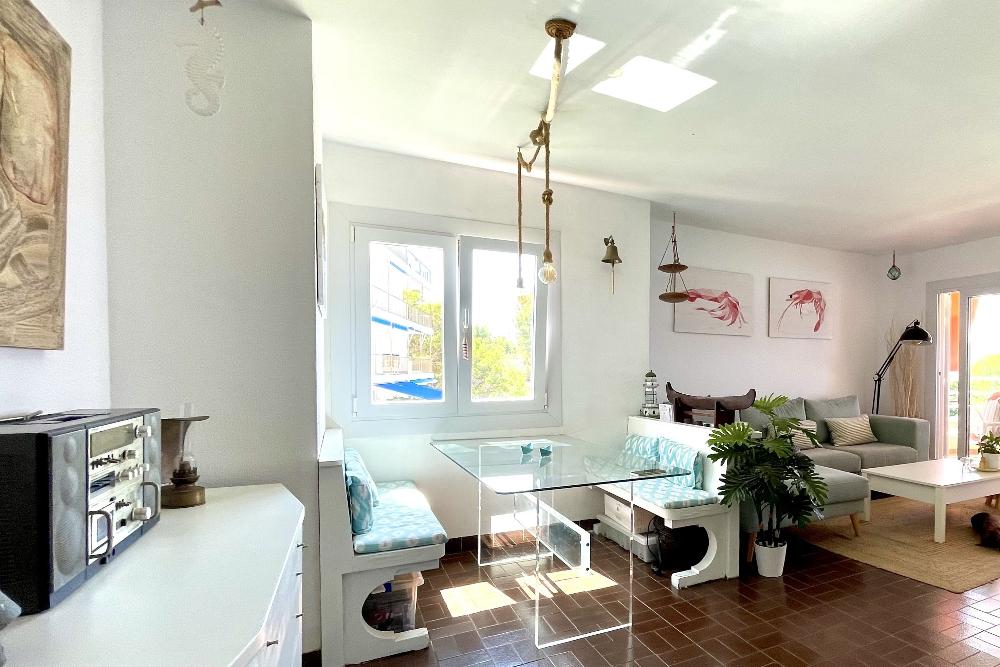 Komfortable Wohnung mit spektakulärem Meerblick und direktem Zugang zum Strand in Cala Blava. Die Wohnung liegt weniger als 15 Minuten vom Flughafen und von Palma entfernt und bietet einen herrlichen Blick auf die Bucht von Palma. Es verfügt über einen gemütlichen Ess- und Wohnbereich mit großen Fenstern zur Südterrasse, zwei Schlafzimmer, Bad und Küche mit separatem Wasch-/Abstellraum. Klimaanlage warm/kalt, Internet inklusive, überdachter Parkplatz auf dem Grundstück. Einfaches Leben in der Nähe der Natur.