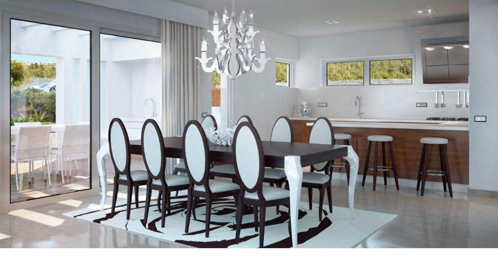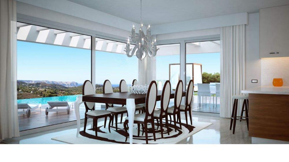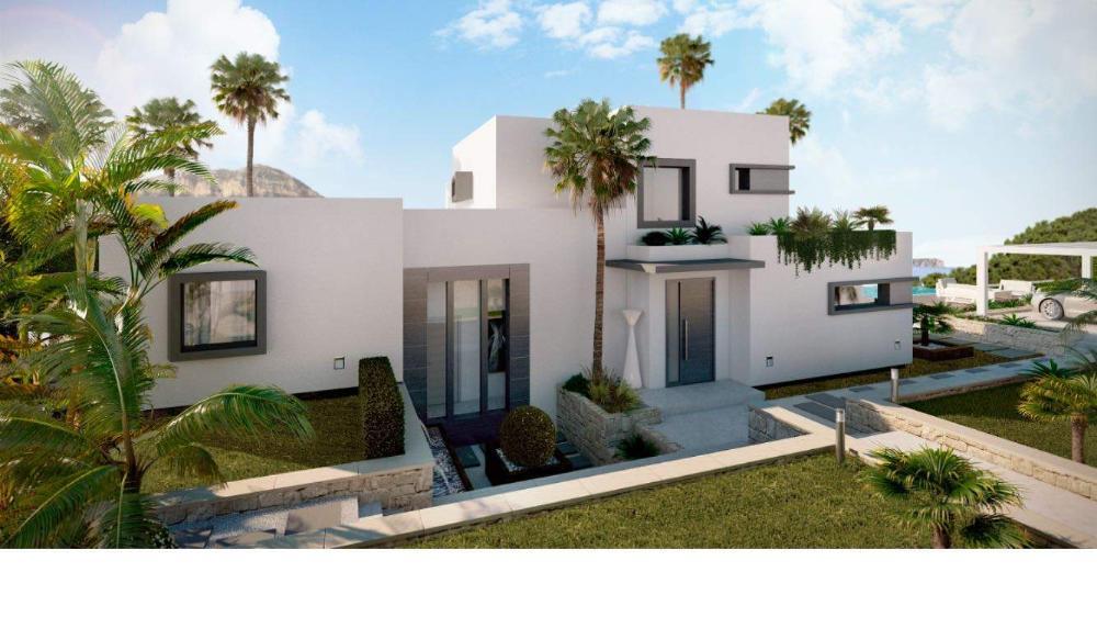 Moderne Villa zum Verkauf in Javea mit Meerblick, die Baugenehmigung wurde bereits erteilt und die Villa kann in 10 Monaten fertiggestellt werden. Die innere Aufteilung, Anordnung und Größe der Fenster kann noch verändert werden, lediglich die Anordnung der Außenwände muss beibehalten werden. Das Anwesen besteht aus 3 Etagen, das Erdgeschoss verfügt über ein geräumiges Wohnzimmer mit Zugang zur Terrasse, eine voll ausgestattete offene Küche und 2 Doppelschlafzimmer mit eigenem Bad. Auf dieser Ebene befindet sich auch eine große überdachte Terrasse mit Außenküche, Infinity-Pool und einem schönen, pflegeleichten Garten. Auf der ersten Etage befindet sich das Hauptschlafzimmer mit eigenem Bad, Ankleidezimmer und einer privaten Terrasse. In einer unteren Ebene, mit viel Tageslicht durch die verschiedenen Terrassen, befindet sich ein separates Apartment, dies können auch 2 zusätzliche Schlafzimmer, Heimkino oder Garage sein. Es gibt auch einen Carport für 2 Autos. Das Anwesen befindet sich in einer ruhigen neuen Nachbarschaft mit allen Annehmlichkeiten einschließlich Gas und liegt in der Nähe des Zentrums von Benitachell und nur 6 Autominuten vom Sandstrand von Javea und 10 Minuten von Moraira entfernt