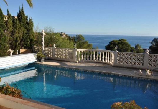 Villa in Südlage, mit WUNDERBAREM MEERBLICK von jeder Etage und Poolterrasse. In ruhiger Lage in Balcon al Mar gelegen, mit DREI EINZELNEN WOHNEN – die erste und zweite Etage sind durch eine Innen- und eine Außentreppe verbunden. Betreten Sie von der Straße aus den zweiten Stock und den Hauptwohnbereich, bestehend aus: Eingangshalle; sehr geräumiges Wohnzimmer; geschlossene Naya, mit Balkon; Esszimmer; Küche; Schlafzimmer mit Doppelbett, mit eigenem Bad und privater Terrasse; zwei Doppelzimmer; zwei Familienbäder. Im ersten Stock: großes Wohn-/Esszimmer; verglaste Naya; offene Küche; 3 Schlafzimmer; 2 Badezimmer; Lagerraum. Im Erdgeschoss besteht eine Wohnung aus: Wohn-/Esszimmer; offene Küche; Schlafzimmer mit Doppelbett, mit eigenem Bad. Außerdem: Zentralheizung; Doppelverglasung; Holzofen; Einbauschränke. Außen: großer 9 x 4 Swimmingpool, mit umlaufender Sonnenterrasse; Sommerküche; Grill; Autohafen.