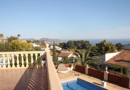 Luxuriöser Neubau in Südlage, Villa mit herrlichem MEERBLICK. Auf einem leicht abfallenden Grundstück gelegen, in der renommierten Gegend von San Jaime, in der Nähe aller Annehmlichkeiten und 1,5 km vom Meer entfernt und eine kurze Fahrt nach Moraira-Stadt. Die Unterbringung im Erdgeschoss besteht aus: Eingangshalle, mit Gäste-WC; geräumiges Wohn-/Esszimmer mit Zugang zur Terrasse (80m2), teilweise überdacht; offene und voll ausgestattete Küche; Lagerraum; geräumiges Schlafzimmer mit Doppelbett, mit eigenem Bad und Zugang zur Terrasse. Im ersten Stock: Aufenthaltsraum; Gäste-WC; Hauptschlafzimmer mit eigenem Bad; 2 Doppelschlafzimmer, beide mit eigenem Bad; große Terrasse. Auf der unteren Ebene: 110m2 Garage. Außerdem: Fußbodenheizung; Klimaanlage; Doppelverglasung; elektrische Rollläden; Einbauschränke; Alarm.Äußerlich: automatisches Tor zum pflegeleichten und bewässerten Garten; 10 x 5 Infinity-Pool; Dusche am Pool; Garage und Parkplatz für 2 Autos. Die Villa ist mit allen modernen Annehmlichkeiten ausgestattet und es werden nur hochwertige Produkte verwendet.