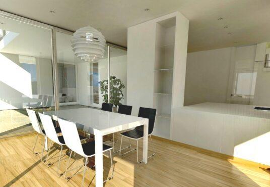 Moderne, nach Süden ausgerichtete, Villa zum Verkauf . In ruhiger Lage gelegen. Die Villa im Erdgeschoss besteht aus: großem Wohnzimmer mit offener, voll ausgestatteter Küche; Allzweckraum; weitere Gästetoilette. Im ersten Stock: 3 geräumige Doppelzimmer, alle mit eigenem Bad und großer privater Terrasse. Zusätzlich: Fußbodenheizung; Klimaanlage; Einbauschränke; Doppelverglasung; elektrische Rollläden; Video Telefon; Alarm.Äußerlich: 10 x 5 Pool; wartungsarmer Garten mit automatischer Bewässerung; großer Infinity-Pool; automatisches Tor zum Doppelcarport.