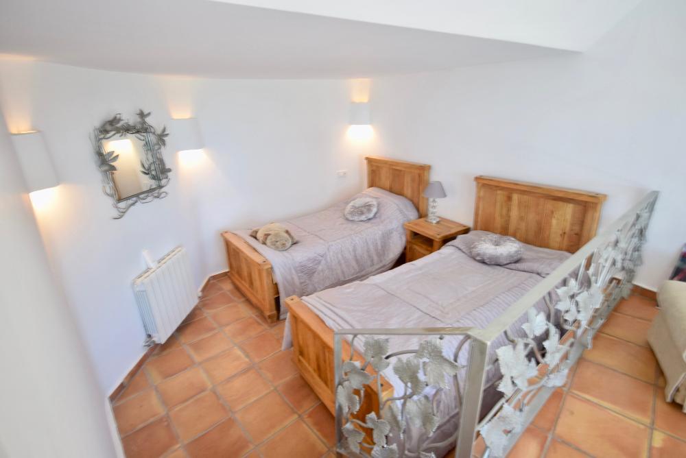 MODERNE, nach Süden ausgerichtete Luxusvilla in einer der begehrtesten Gegenden von Javea, mit hervorragendem Blick auf die Bucht von JAVEA und nur wenige Gehminuten von der Altstadt entfernt, in privater, ruhiger Lage und komplett renoviert. Diese Villa im ibizenkischen Stil wurde vom Architekten Manual Jorge Fernandez entworfen. Im Inneren wurde die Villa komplett modernisiert und mit neuer Elektrik und Sanitär ausgestattet. Hauptwohnbereich: Wohn-/Esszimmer mit Holzkamin aus Tosca-Stein, Küche 2 Doppelschlafzimmer, 2 Bäder, Erdgeschoss, geräumiger Wohnbereich, darunter ein Doppelschlafzimmer und ein Badezimmer, die Immobilie profitiert von doppelt verglasten Fenstern und Türen, Zentralheizung und Klimaanlage Konditionierung durchgängig. Außen: Garten im mediterranen Stil mit schönen Rasenflächen und alten Palmen und einem beeindruckenden Designer-Swimmingpool mit Höhlen und Wasserfall, Doppelgarage.
