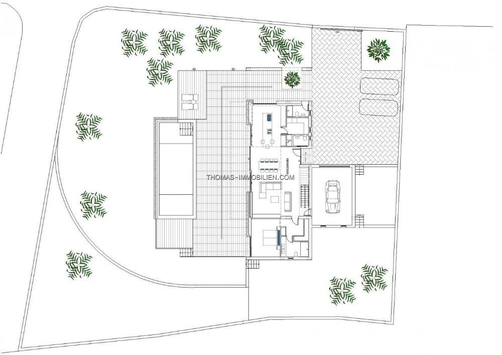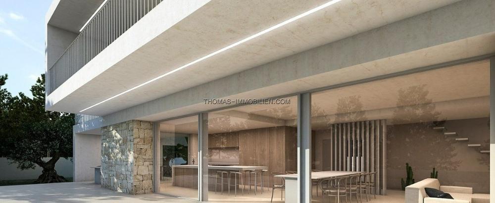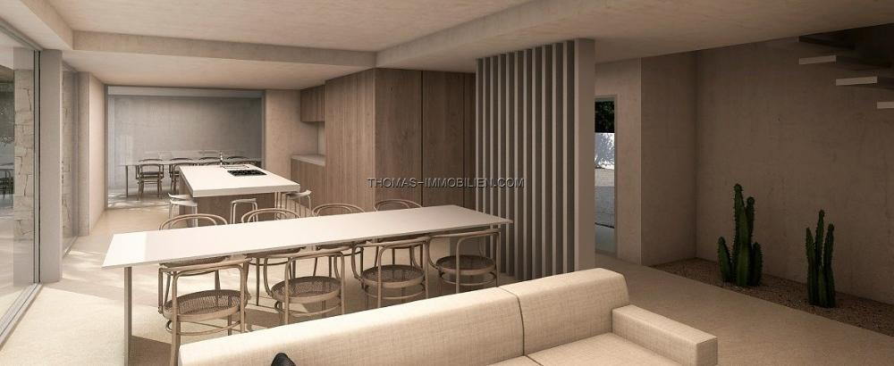 Natürlich beinhaltet es eine moderne Küche mit Insel und allen Geräten, Aerothermische Klimaanlage (Fußbodenheizung und Abluftklimatisierung), Badezimmermöbel, Wandarmaturen, technische LED-Beleuchtung, Porzellanböden im Großformat, kompletter Garten mit Automatik Bewässerungssystem usw.