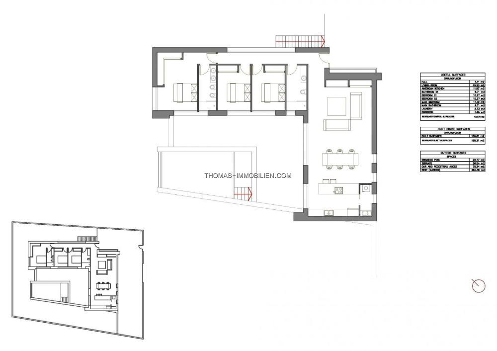 Das Haus ist auf einer Etage verteilt und in zwei Teile geteilt. Schlafzimmer und Badezimmer befinden sich auf einer Seite. Dieses Haus verfügt über 2. Schlafzimmer und ein Schlafzimmer mit eigenem Bad und Bad.