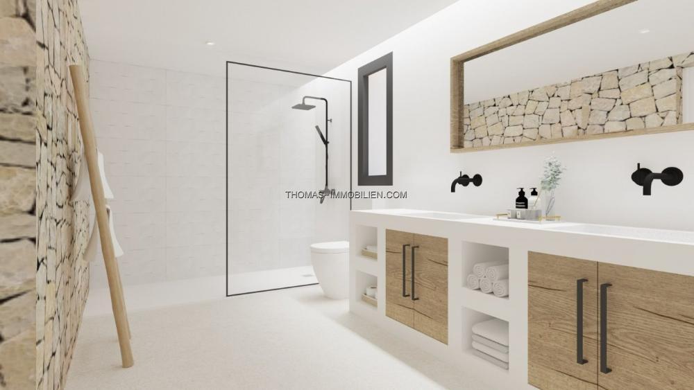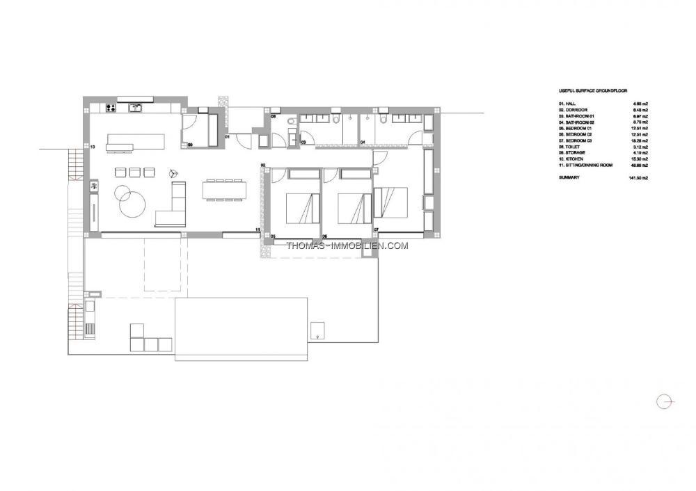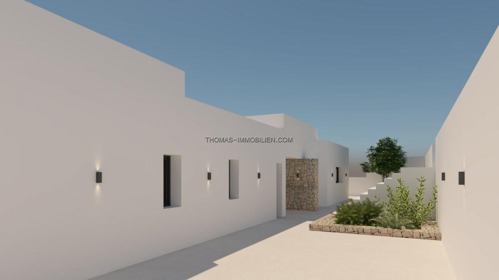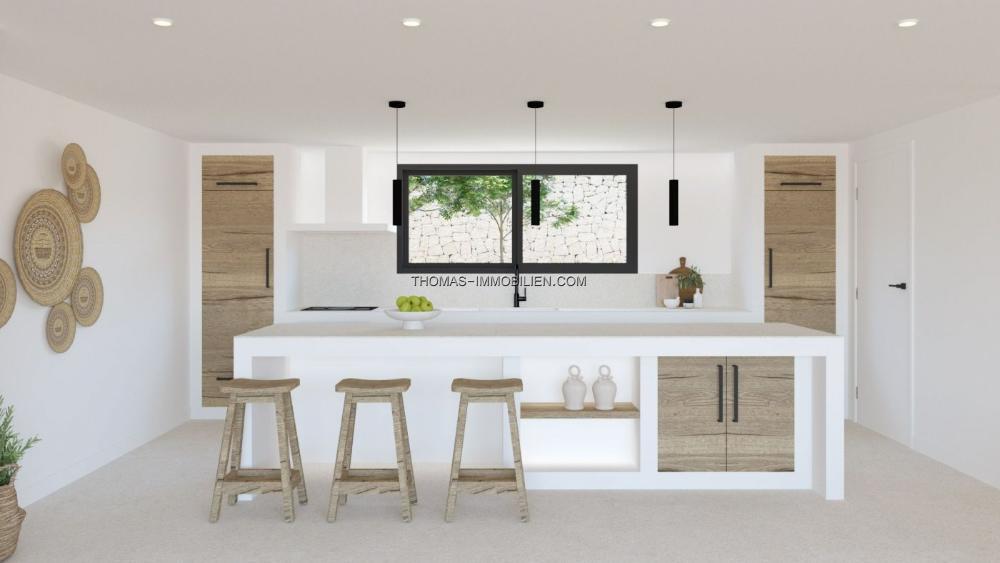 Die Villa auf einer Etage, wird auf einem Grundstück von rund 800 m2 gebaut, ist nach Süden ausgerichtet, mit 240 m2 bebauter Fläche, hat eine offene Küche mit einer zentralen Insel, die mit Balay-Geräten ausgestattet ist, ein Wohnzimmer, 3 Schlafzimmer, 1 mit Bad en suite, 2 Badezimmer, 1 WC und privater rechteckiger Pool mit 29 m2 Wasserfläche.