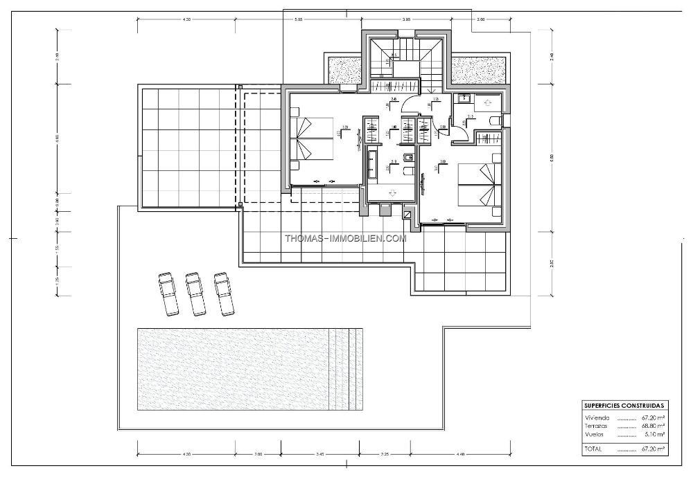 Im Obergeschoss befinden sich 2 weitere Schlafzimmer mit 2 Badezimmern.