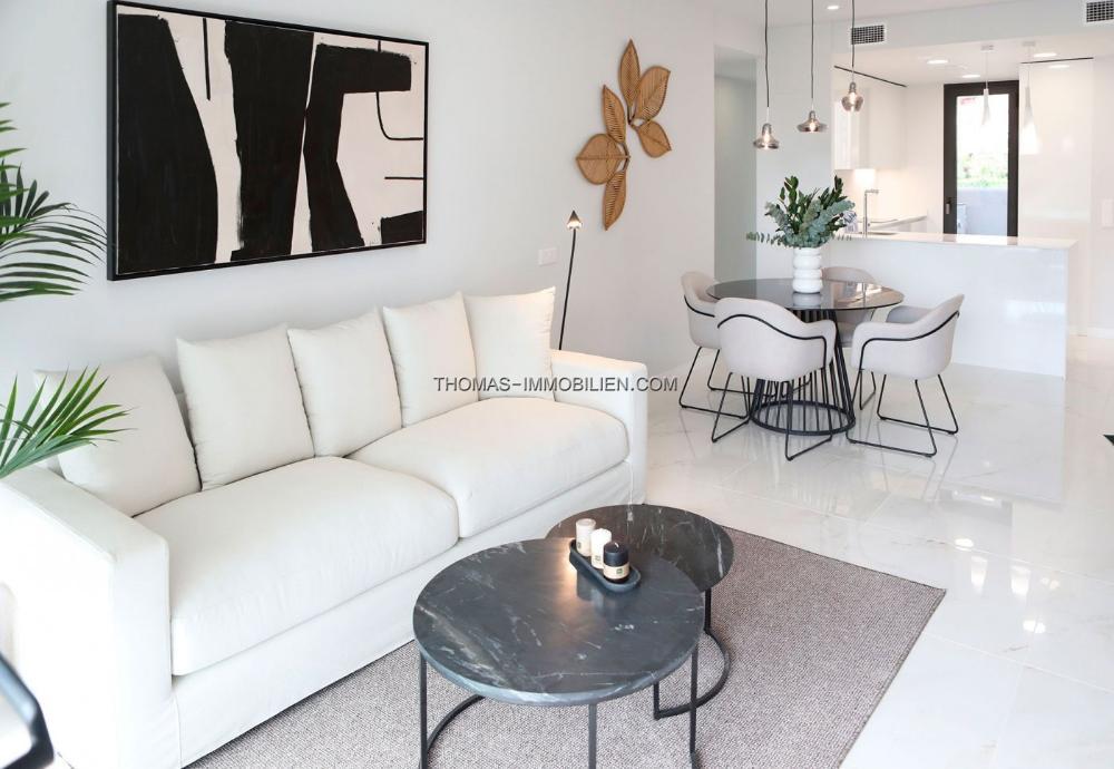 Haushaltsgeräte: Dunstabzugshaube, Backofen und Touch-Control-Induktionskochfeld, Kühlschrank, Geschirrspüler, Waschmaschine, Vorinstallation für Trockner und Mikrowelle. Duschabtrennung mit Sicherheitsglas, Spiegel, Beleuchtung mit LED-Spots, Klimaanlage, Aerothermal