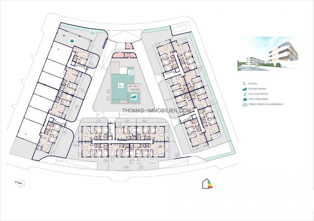 Die Wohnanlage verfügt über Pools für Kinder und Erwachsene, die von einer Sonnenterrasse umgeben sind. Ein Social Club ermöglicht es Ihnen, alle gemeinsamen Einrichtungen zu genießen, wo Sie Partys, Tagungen oder Familiengeburtstage feiern können.