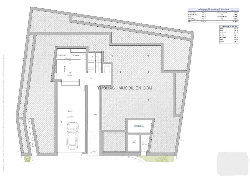 Wenn man von der Straße durch ein automatisches Tor einfährt, gelangt man direkt zur Einfahrt in die Garage, die sich auf der Halbkellerebene befindet. Die geräumige 52 m² große Garage bietet Platz für mehrere Fahrzeuge und verfügt über einen eigenen Waschraum und einen Weinkeller, der einen Hauch von Luxus und Zweckmäßigkeit vermittelt.