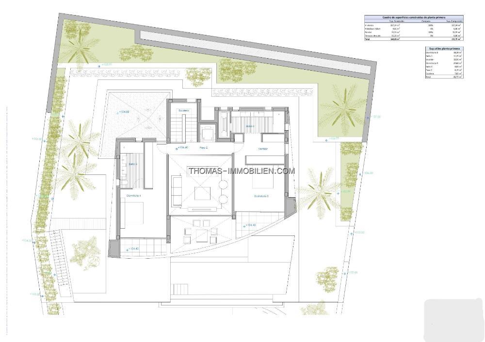 Die Villa verfügt über eine erstklassige Ausstattung, darunter Technal-Tischlerei mit Sicherheitsglas, LED-Beleuchtung, Fußbodenheizung, Klimaanlage und ein aerothermisches System für Warmwasser und Heizung. Weitere Annehmlichkeiten sind elektrische Jalousien, Einbauschränke, Alarmanlagen für innen und außen, vorinstallierte Sicherheitskameras und ein 10 x 3,3 m großer Infinity-Pool mit Grillplatz. Die Villa ist nach Süden ausgerichtet, um eine optimale Sonneneinstrahlung zu gewährleisten, und verfügt über eine Energieeffizienzklasse A.