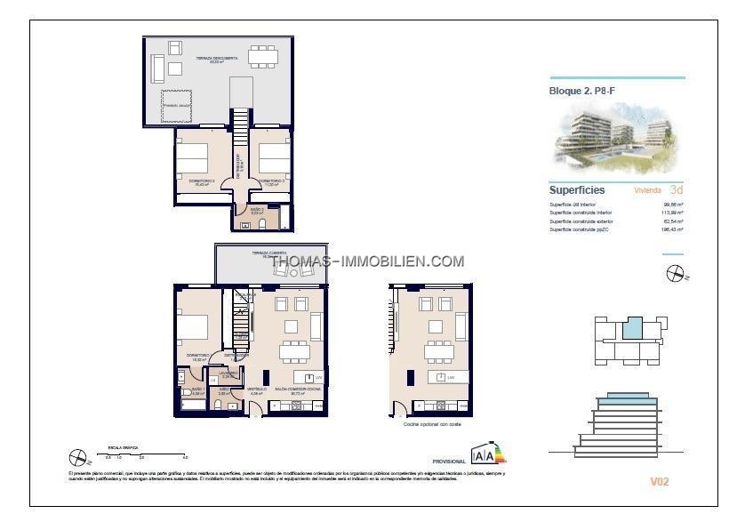Moderne Wohnungen mit 2 und 3 Schlafzimmern, offene Küche mit Wohnbereich, große Terrassen und eine komplette Urbanisation, die einen sozialen Club, Fitnessraum und Schwimmbad umfasst.