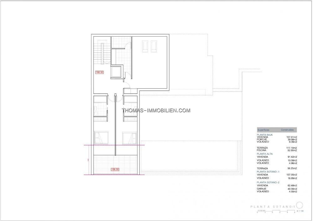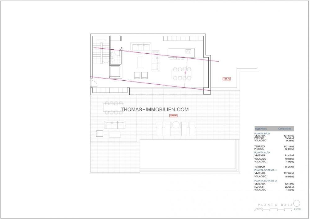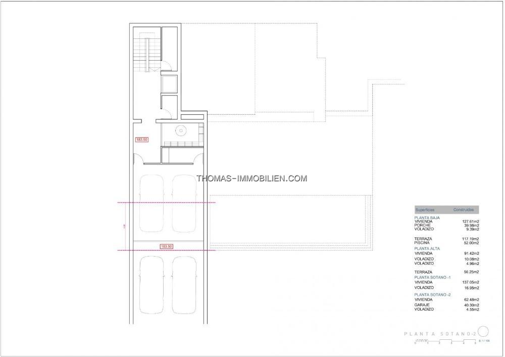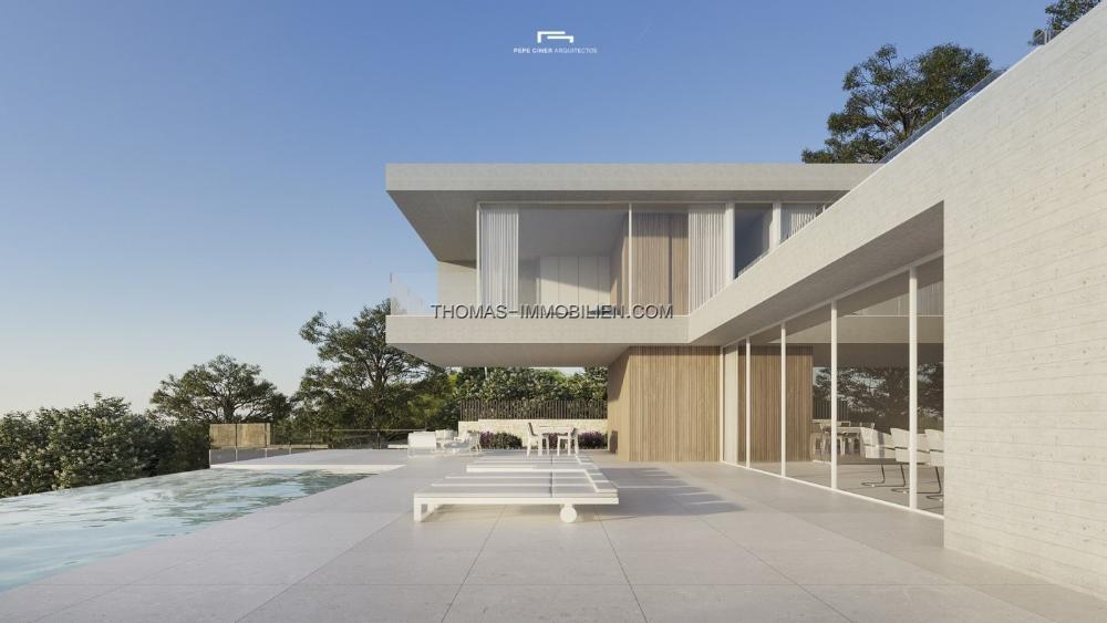 NEU GEBAUTE LUXUSVILLA IN BENISSA Neubau-Luxusvilla in Benissa mit BLICK AUF DAS MEER und den Peñón de Ifach. Diese Villa mit Sichtbetonverkleidung hat 4 Etagen, die mit einem Aufzug und einer Innentreppe verbunden sind. Im Erdgeschoss befindet sich ein großer offener Wohn-Ess-Küchenbereich und ein Gäste-WC. Die Küche ist voll ausgestattet und verfügt über eine Kochinsel. Schiebetüren in Deckenhöhe geben direkten Zugang zu einer großzügigen Terrasse und dem Pool. Im Obergeschoss befinden sich zwei Schlafzimmer mit en-suite Badezimmern und eine Terrasse. Das Anwesen verfügt über 2 Untergeschosse. Im Untergeschoss Nummer 1 befinden sich zwei weitere Schlafzimmer mit jeweils eigenem Bad und eine Waschküche. Im Untergeschoss Nummer 2 befinden sich der Fitnessraum, der Keller und eine Garage mit Platz für 4 Autos. Das Haus hat eine Klimaanlage (mit Kanälen) und eine Zentralheizung mit Wärmepumpe. Es verfügt über eine automatische Eingangstür mit einem separaten Fußgängereingang und einer Gegensprechanlage. Auf der gleichen Ebene wie das Haupthaus befindet sich das Schwimmbad. Das Haus verfügt über Außenschreinerarbeiten, automatische Rollläden und Moskitonetze in den Schlafzimmern, Einbauschränke mit Modulen und eine Basisalarmanlage. Benissa liegt am nördlichen Ende der Costa Blanca, direkt an der Autobahn A-7; die Fahrt zum und vom Flughafen Alicante dauert etwas mehr als eine Stunde. Die Stadt ist klein, aber bezaubernd mit ihrer mittelalterlichen Architektur und den charmanten Plätzen. Obwohl nur 5 km Luftlinie vom Meer entfernt, sind die nächstgelegenen Strände auf der Straße etwa 11 km und die Küstenstädte Calpe (im Süden) und Moraira (im Nordosten) etwa 12 km entfernt. Der Blick auf das Mittelmeer, das Wetter, die wilde Natur, die Qualität des Lichts, die Architektur der Stadt, Benissa wird Sie verführen. Der Flughafen von Alicante liegt 1 Stunde entfernt.