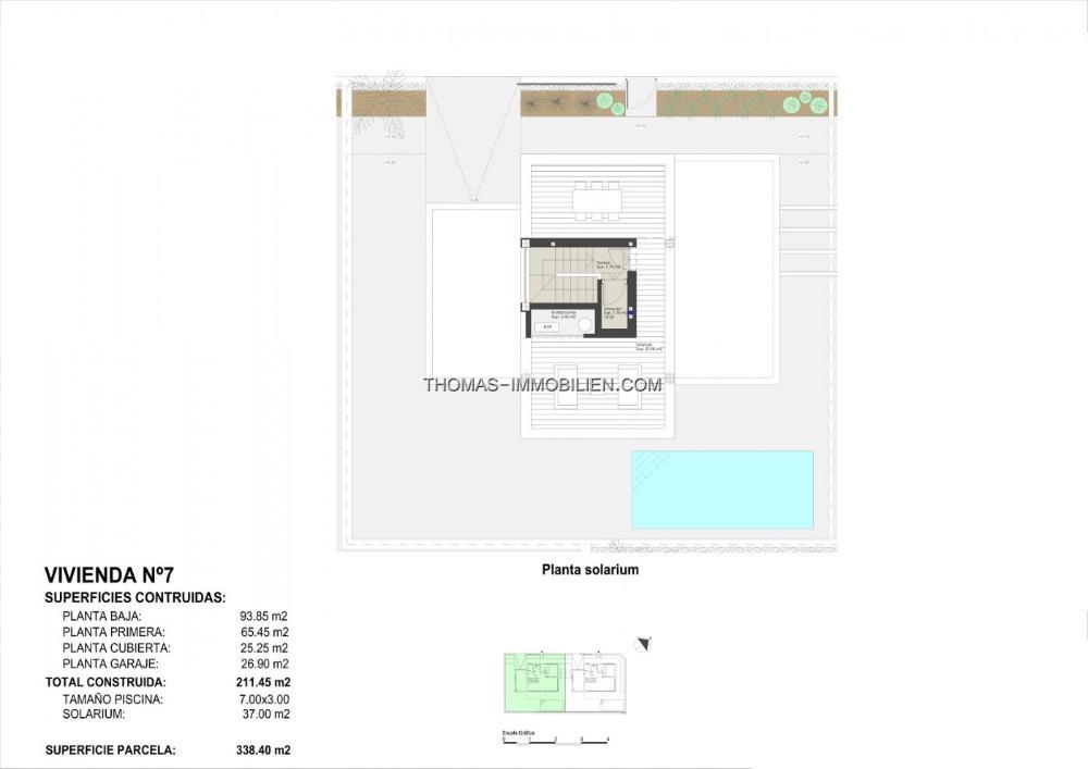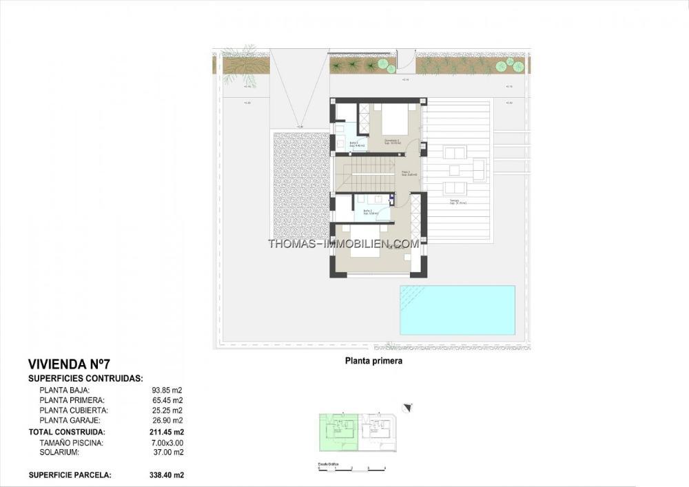 NEU GEBAUTE VILLEN IN TORRE DE LA HORADADA Exklusive Wohnanlage mit 2 Luxusvillen mit Meerblick am Strand "Las Higuericas" in Torre de la Horadada. Jede Villa hat einen unabhängigen Zugang von den umliegenden Straßen, da es kein angrenzendes Gebäude gibt. Wenig befahrene Straßen mit großen Grünflächen rund um die Wohnanlage, diese Aspekte sind ideal für junge Familienmitglieder. Die Villen haben ein Grundstück von 336m² oder 338m² und eine bebaute Fläche von 211m². Die Villen werden mit drei Schlafzimmern gebaut; es ist jedoch auch möglich, sie mit 4 Schlafzimmern zu bauen. Eines der Schlafzimmer ist mit einem kompletten Badezimmer ausgestattet. Die Küche ist komplett fertiggestellt, mit hochwertigen Materialien, die vom Eigentümer ausgewählt wurden, einschließlich der Geräte. Das Esszimmer ist offen gestaltet und von großen Fenstern umgeben, die für angenehmes Tageslicht sorgen. Von hier aus hat man direkten Zugang zum Schwimmbad und zum Garten mit Beleuchtung, Bewässerung und lokaler Vegetation. Dank des Designs und der Innenaufteilung wird in allen Villen ein Mikroklima erreicht, das sich auf alle Wohnräume erstreckt. Außerdem wird durch die Wärme- und Schalldämmung ein harmonisches und angenehmes Raumklima erreicht. All dies trägt dazu bei, dass die Villen nachhaltig sind und die Umwelt respektieren. Ausgewählte Oberflächen, die Verwendung von hochwertigen Materialien, maßgeschneidertes Luxusdesign und maximaler Komfort, gepaart mit einer Klimaanlage mit Warm- und Kaltluftführung in allen Bereichen, sorgen dafür, dass man die Villa sowohl in warmen Sommern als auch in milden Wintern genießen und das ganze Jahr über hier wohnen kann. Nicht zu vergessen eine überdachte Garage und ein Parkplatz mit unabhängigem Eingang für 2 Autos. Torre de la Horadada befindet sich südlich von Alicante in einer wunderschönen Lage an der Küste. Die schönen Strände von Torre de la Horadada und Mil Palmeras haben feinen Sand und eine schöne Promenade. Es gibt viele Restaurants, Bars und Geschäfte, auch Wassersport, Tauchen und Schnorcheln. Es ist gut verbunden nur 40 Minuten von Alicante und Murcias Corvera Flughäfen, mit großen kommerziellen Einkaufszentren und mehrere Golfplätze alle leicht zu erreichen.