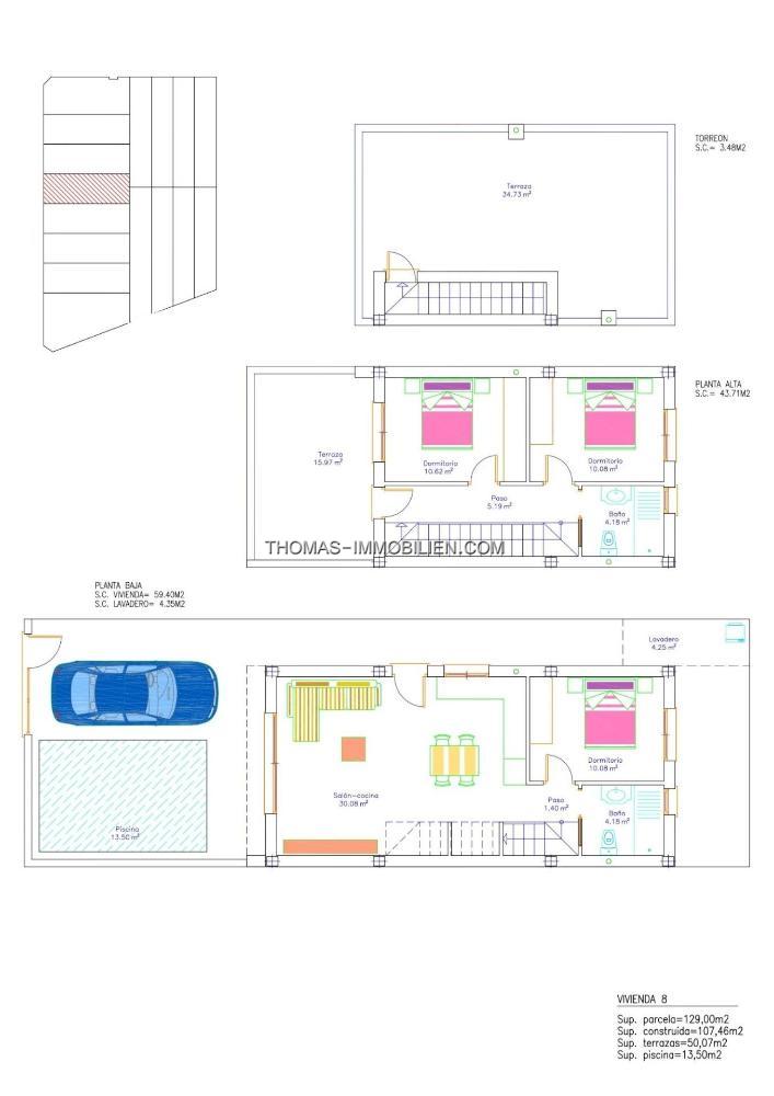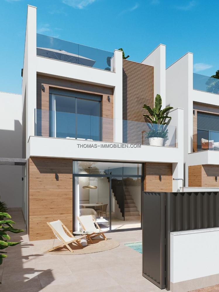 NEUBAU VILLEN IN SAN PEDRO DEL PINATAR Neues Projekt mit Villen und Reihenhäusern in San Pedro del Pinatar, Murcia. Luxuriöse Wohnanlage, bestehend aus 16 Reihenhäusern und freistehenden Villen, alle mit privatem Pool, Terrasse, Solarium und Parkplatz auf dem Grundstück. Jede Immobilie verfügt über 3 Schlafzimmer und 2 komplette Badezimmer, sowie ein Ankleidezimmer im Hauptschlafzimmer. Die Häuser wurden in einem zeitgenössischen Stil und mit einem offenen Konzept entworfen, das aus einer voll ausgestatteten Küche und einem Wohn-Esszimmer besteht. Die Anlage befindet sich in San Pedro del Pinatar, Murcia, umgeben von allen Annehmlichkeiten, Sportanlagen, in der Nähe mehrerer Golfplätze und 5 Minuten vom Mittelmeer und den Stränden des Mar Menor entfernt. Die Immobilie wird die höchsten Standards erfüllen und wird mit ausgestattet werden: Privater Swimmingpool mit LED-Beleuchtung und Außendusche. Voll ausgestattete Küche mit Backofen und Mikrowelle in der Spalte, eingebauter Geschirrspüler und Kühlschrank mit Gefrierfach, Cerankochfeld und Dunstabzugshaube. LED-Beleuchtung: im Inneren der Immobilie (Esszimmer, Küche, Flure und Bäder) sowie im Außenbereich. Motorisierte Jalousien im Wohnzimmer und im Hauptschlafzimmer. Ankleidezimmer im Hauptschlafzimmer, mit Regalen, Schubladenschrank, Ausziehstangen und Spiegel. Schränke mit Schubladenauszug. Komplette Bäder mit Waschbecken, Wandtoilette mit eingebautem Spülkasten, Spiegel, Regendusche und Sichtschutz. Vorinstallation der Fußbodenheizung in den Bädern. Vorinstallation von Klimaanlagenkanälen. Vorinstallation von Sonnenkollektoren. Sonnenterrasse. Parkplatz innerhalb des Grundstücks. Die privilegierte Lage von San Pedro del Pinatar am Mar Menor und an der Mittelmeerküste zieht alle an, die sich für Segeln und Wassersport interessieren, denn es gibt Liegeplätze im Yachthafen und Segelclubs, während die Strände und natürlichen Schlammbäder diejenigen anziehen, die Sonne, Meer und Sand suchen. Die Vorzüge der für die Region typischen Schlammbäder oder des ruhigen Wassers des Mar Menor haben das Wachstum von Lo Pagán-San Pedro del Pinatar begünstigt, das heute über alle erdenklichen Annehmlichkeiten verfügt. Außerdem ist die Lage des Ortes ausgezeichnet, nur 5 Minuten vom Einkaufszentrum Dos Mares entfernt. Der Flughafen Murcia/Corvera ist 30 Minuten und der Flughafen Alicante eine Autostunde entfernt.