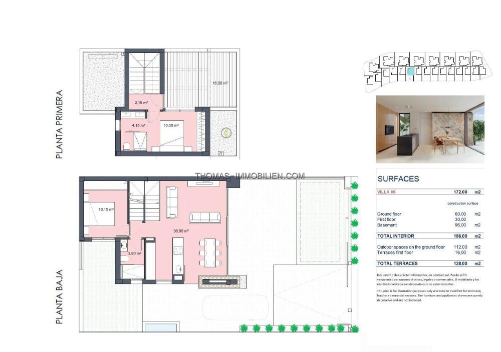 Jede Villa ist auf drei Etagen verteilt und bietet reichlich Platz und eine komfortable Ausstattung. Mit 2 oder 3 Schlafzimmern und 2 Bädern sind diese Häuser ideal für Familien und Paare gleichermaßen. Die offene Küche geht nahtlos in den Ess- und Wohnbereich über und schafft eine helle, luftige Atmosphäre. Zu den wichtigsten Merkmalen gehören Einbauschränke, ein privater Keller, eine optionale Sonnenterrasse und ein privater Garten mit einem optionalen Swimmingpool und einem Parkplatz.