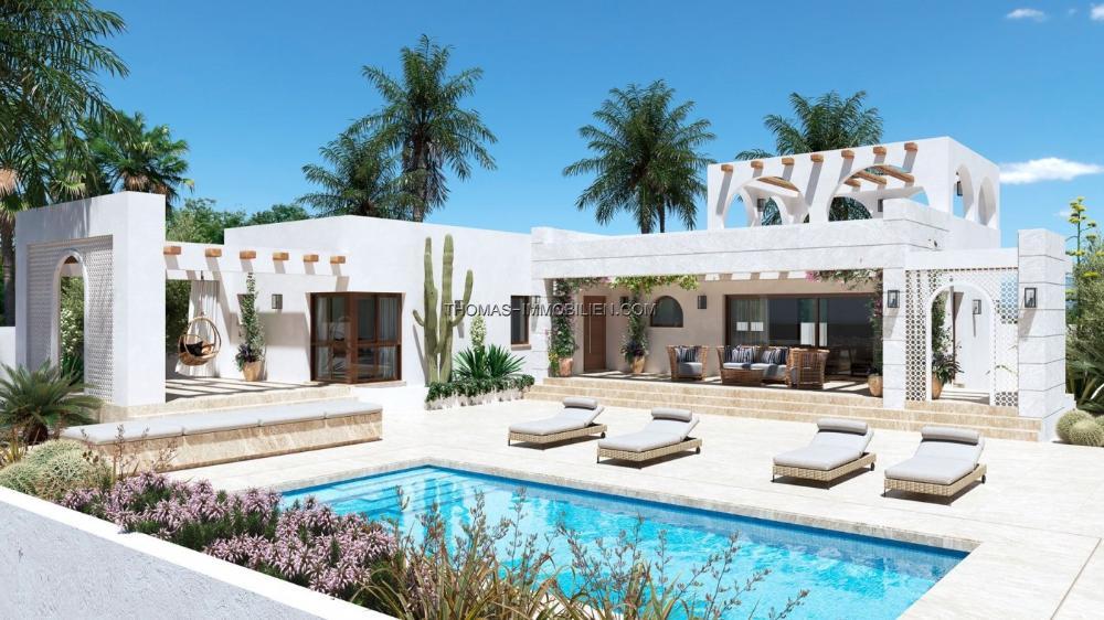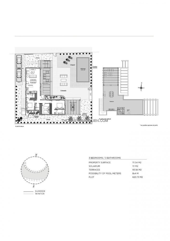 Villa verfügt über Wohn-Esszimmer mit offener Küche, 3 Schlafzimmer und 3 Bäder, große Sonnenterrasse, privater Garten, Schwimmbad und Parkplatz.