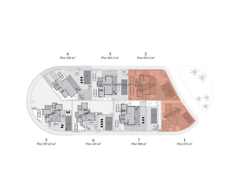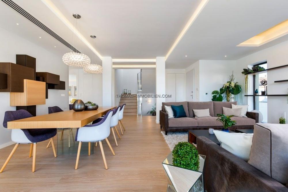 Villa bauen über 3 Etagen, mit 3 Schlafzimmern und 3 Bädern, offene Küche mit dem Wohnbereich, Einbauschränke, private Sonnenterrasse, Keller, privaten Garten mit dem Pool und Parkplatz.