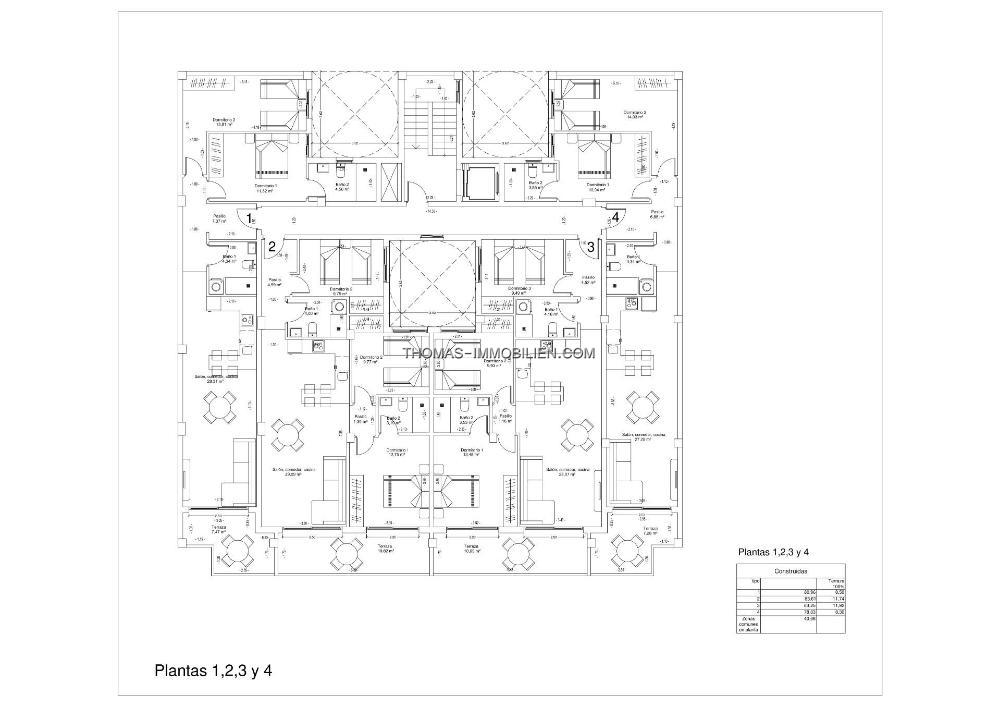 Schöne Wohnungen mit 2 und 3 Schlafzimmern, geräumigen Wohnzimmern, offenen Küchen, die mit allen Elektrogeräten ausgestattet sind, Badezimmern mit Waschbecken, Spiegeln, Duschabtrennungen und Fußbodenheizungen sowie privaten Terrassen.