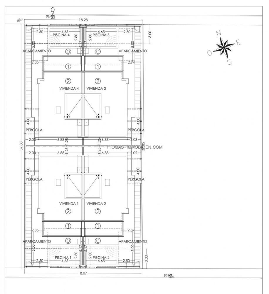 Neubau einer kleinen Anlage von 4 modernen Villen in einem Wohngebiet in der Nähe des Stadtzentrums von San Pedro Del Pinatar und Strände von Lo Pagan.
