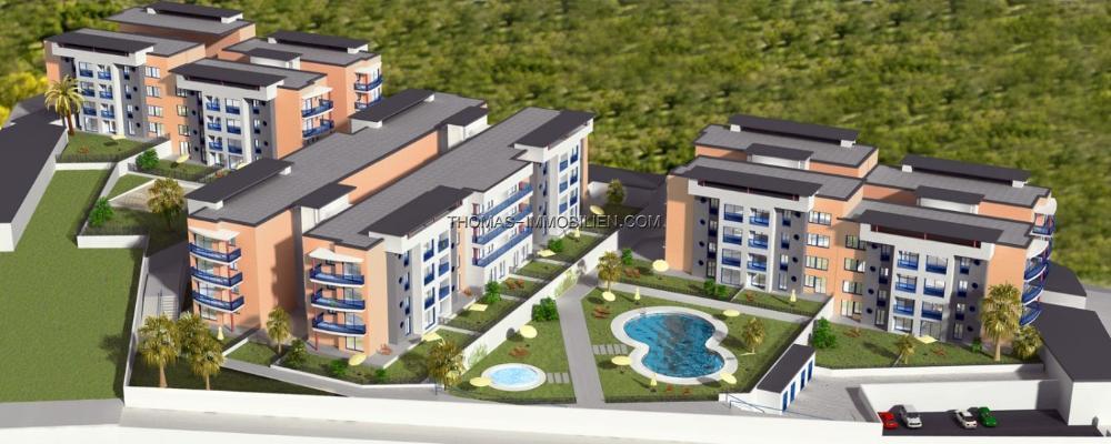 Neubauwohnanlage mit 32 Wohnungen mit 2 und 3 Schlafzimmern, Terrassen, Garagen und Abstellräumen, Gemeinschaftsbereich mit Pool.