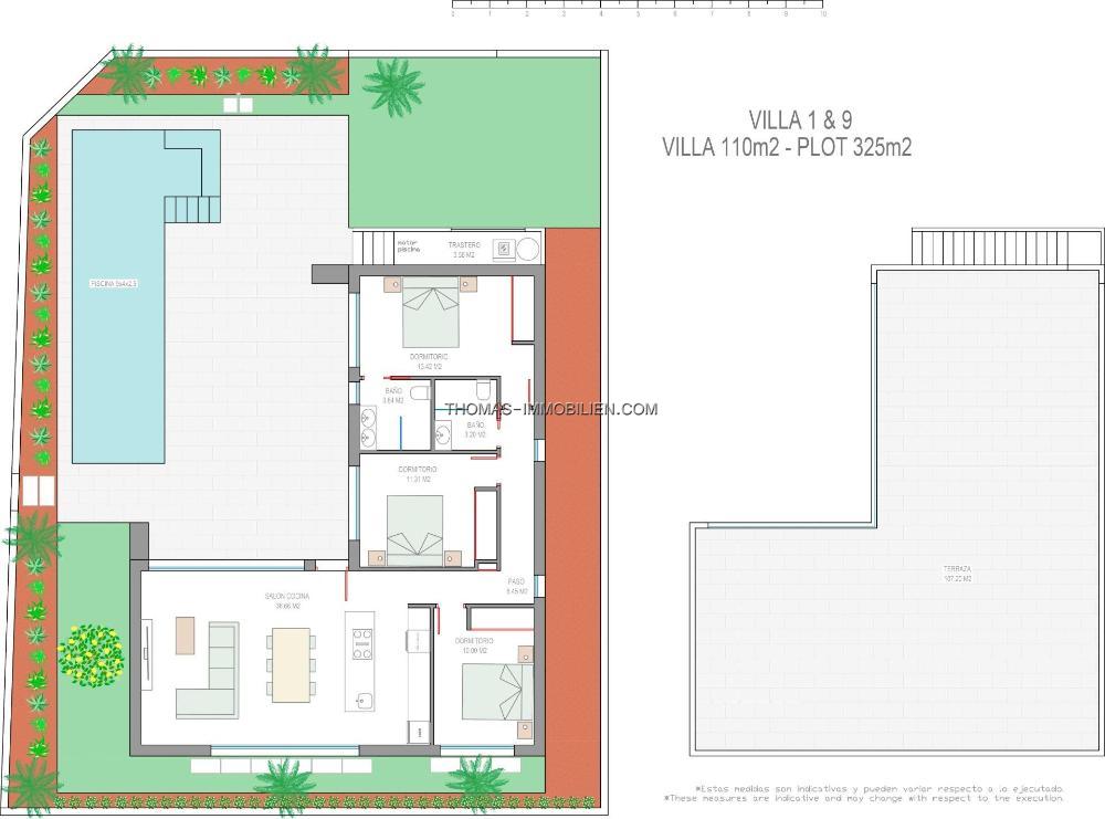 Villen bauen über 1 Stockwerk und besteht aus 3 Schlafzimmer, 2 Bäder, offene Küche, das Wohnzimmer mit Blick auf die Terrasse, Solarium, privaten Garten mit dem Pool.