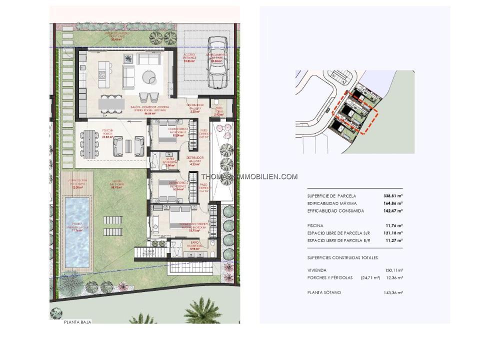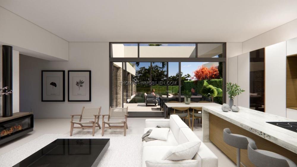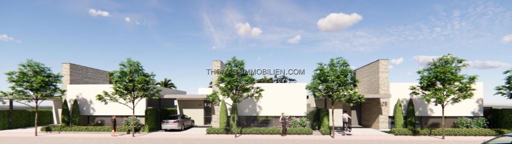 Villen bauen über von 2 Etagen und verfügt über 3 Schlafzimmer, 2 Bäder und ein Gäste-WC und sind mit einem zeitgenössischen Stil und offenes Konzept, bestehend aus einer voll ausgestatteten Küche und Wohn-Esszimmer, Einbauschränke, privater Garten mit dem Pool und Off-Road-Parkplatz, private Sonnenterrasse entworfen.